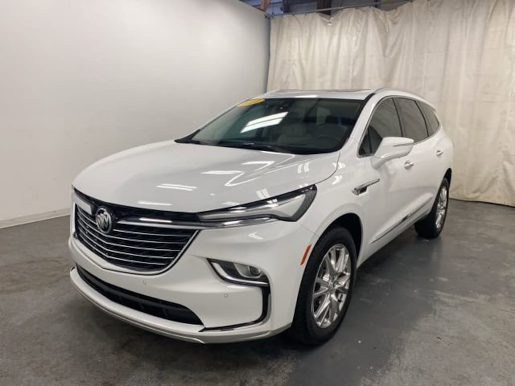 CARFAX One-Owner. Clean CARFAX. Certified. Summit White 2023 Buick Enclave Premium Group FWD 9-Speed Automatic 3.6L V6 SIDI VVT **ONE OWNER**, **GM CERTIFIED**, **ACCIDENT FREE**, **LOCAL TRADE IN**, Buick Certified Pre-Owned Certified, FWD, 10 Speakers, 18" Aluminum Wheels, 20" Polished Aluminum Wheels, 2nd Row Heated Outboard Seats, 3.49 Axle Ratio, 3rd row seats: split-bench, 4-Wheel Disc Brakes, 6-Way Power Front Passenger Seat Adjuster, 7-Passenger Seating, 8-Way Power Driver Seat Adjuster, ABS brakes, Air Conditioning, Alloy wheels, AM/FM radio: SiriusXM with 360L, Auto High-beam Headlights, Auto-dimming door mirrors, Auto-dimming Rear-View mirror, Automatic temperature control, Bose Performance-Enhanced 10-Speaker System, Brake assist, Bumpers: body-color, Cargo Package (LPO) (DISC), Cargo Security Shade (LPO), Compass, Delay-off headlights, Driver 4-Way Power Lumbar Seat Adjuster, Driver door bin, Driver vanity mirror, Dual front impact airbags, Dual front side impact airbags, Electronic Stability Control, Emergency communication system: OnStar and Buick connected services capable, Experience Buick Package, Exterior Parking Camera Rear, Four wheel independent suspension, Front & Rear Park Assist, Front anti-roll bar, Front Bucket Seats, Front Center Armrest, Front dual zone A/C, Front Passenger 4-Way Power Lumbar Seat Adjuster, Front Power Sliding Moonroof, Front reading lights, Fully automatic headlights, Garage door transmitter, Heads-Up Display, Heated door mirrors, Heated Driver & Front Passenger Seats, Heated front seats, Heated rear seats, Heated Steering Wheel, Heated steering wheel, Illuminated entry, Leather steering wheel, Low tire pressure warning, Memory Package, Memory seat, Navigation System, Not Equipped w/3rd Row 60/40 Power-Folding Seat, Occupant sensing airbag, Outside temperature display, Overhead airbag, Overhead console, Panic alarm, Passenger door bin, Passenger vanity mirror, Perforated Leather-Appointed Seat Trim, Power door mirrors, Power driver seat, Power Liftgate, Power passenger seat, Power steering, Power windows, Preferred Equipment Group 1SN, Premium audio system: Buick Infotainment System, Radio data system, Radio: Buick Infotainment Sys AM/FM Stereo w/Nav, Rear air conditioning, Rear anti-roll bar, Rear reading lights, Rear window defroster, Rear window wiper, Remote keyless entry, Roof rack: rails only, Security system, SiriusXM w/360L, Speed control, Speed-sensing steering, Spoiler, Steering wheel memory, Steering wheel mounted audio controls, Tachometer, Telescoping steering wheel, Tilt steering wheel, Traction control, Trip computer, Turn signal indicator mirrors, Variably intermittent wipers, Ventilated Driver & Front Passenger Seats, Ventilated front seats, Vertical Cargo Net (LPO), Voltmeter, Wireless Apple CarPlay/Wireless Android Auto, FWD.