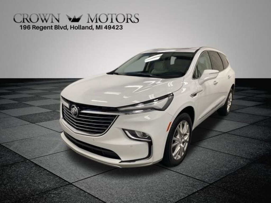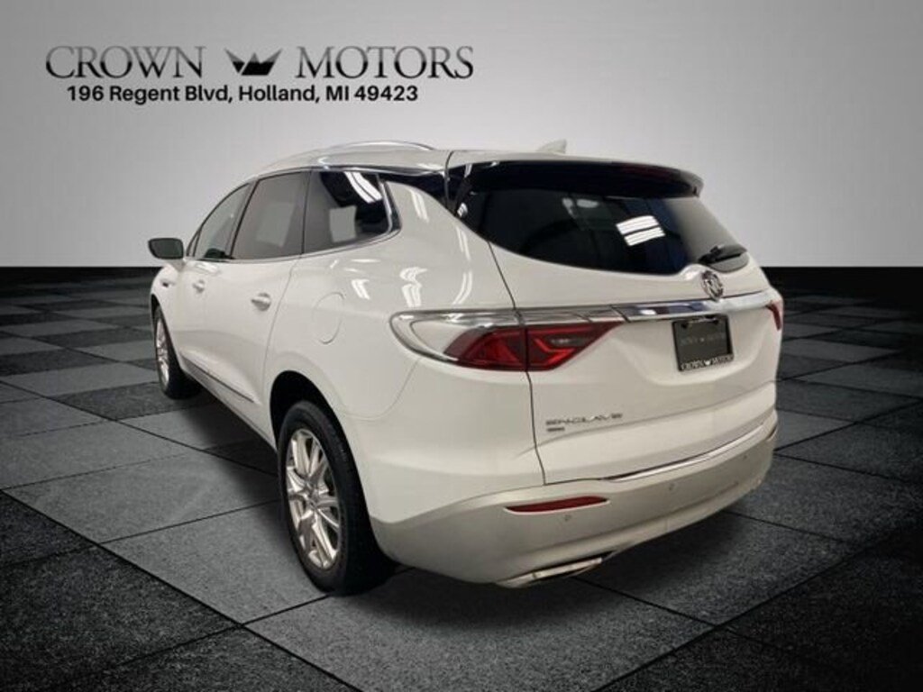 Clean CARFAX. Certified. Summit White 2023 Buick Enclave Essence AWD 9-Speed Automatic 3.6L V6 SIDI VVT ** LOW MILES**, **GM CERTIFIED**, **ACCIDENT FREE**, Buick Certified Pre-Owned Certified, AWD, 18" Aluminum Wheels, 20" Polished Aluminum Wheels, 3.49 Axle Ratio, 3rd Row All-Weather Floor Mats, 3rd row seats: split-bench, 4-Wheel Disc Brakes, 5000lbs Trailering Package, 6 Speakers, 6-Speaker Audio System Feature, 6-Way Power Front Passenger Seat Adjuster, 7-Passenger Seating, 8-Way Power Driver Seat Adjuster, ABS brakes, Air Conditioning, All-Weather Cargo Mat (LPO), All-Weather Floor Mats, Alloy wheels, AM/FM radio: SiriusXM with 360L, Auto High-beam Headlights, Auto-dimming door mirrors, Auto-dimming Rear-View mirror, Automatic temperature control, Brake assist, Buick Interior Protection Package (LPO), Bumpers: body-color, Compass, Delay-off headlights, Driver door bin, Driver vanity mirror, Dual front impact airbags, Dual front side impact airbags, Electronic Stability Control, Emergency communication system: OnStar and Buick connected services capable, Experience Buick Package, Four wheel independent suspension, Front & Rear Park Assist, Front anti-roll bar, Front Bucket Seats, Front Center Armrest, Front dual zone A/C, Front Power Sliding Moonroof, Front reading lights, Fully automatic headlights, Garage door transmitter, Heated door mirrors, Heated Driver & Front Passenger Seats, Heated front seats, Heated Steering Wheel, Heated steering wheel, Heavy-Duty Cooling System, Hitch Guidance, Hitch Guidance w/Hitch View, Illuminated entry, Leather steering wheel, Low tire pressure warning, Occupant sensing airbag, Outside temperature display, Overhead airbag, Overhead console, Panic alarm, Passenger door bin, Passenger vanity mirror, Perforated Leather-Appointed Seat Trim, Power door mirrors, Power Driver Lumbar Control Seat Adjuster, Power driver seat, Power Liftgate, Power Passenger Lumbar Control Seat Adjuster, Power passenger seat, Power steering, Power windows, Preferred Equipment Group 1SL, Premium audio system: Buick Infotainment System, Radio data system, Radio: Buick Infotainment System AM/FM Stereo, Rear air conditioning, Rear anti-roll bar, Rear reading lights, Rear window defroster, Rear window wiper, Remote keyless entry, Roof rack: rails only, Security system, SiriusXM w/360L, Speed control, Speed-sensing steering, Spoiler, Steering wheel mounted audio controls, Tachometer, Telescoping steering wheel, Tilt steering wheel, Traction control, Trip computer, Turn signal indicator mirrors, Variably intermittent wipers, Voltmeter, Wireless Apple CarPlay/Wireless Android Auto, AWD.
