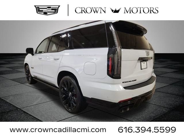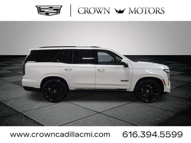 CARFAX One-Owner. Clean CARFAX. Certified. Vibrant White 2026 Cadillac Escalade V-Series AWD 10-Speed Automatic with Overdrive 6.2L V8 Supercharged **ONE OWNER**, ** LOW MILES**, **GM CERTIFIED**, **ACCIDENT FREE**, **LOCAL TRADE IN**, Cadillac Certified Pre-Owned Certified, AWD, Sheer Gray With Jet Black Accents Leather, 24" Black Alloy Wheels, Black Illuminated Cadillac Emblem, Gloss Black Escalade Nameplate, Onyx Package, 2-Presets Memory For Driver Seat Adjuster, 2nd Row Floor Console with Stowable Tray Tables, 2nd Row Portable Device Dual Wireless Charging, 3.23 Axle Ratio, 3rd row seats: split-bench, 4-Way Power Bolster Second Row Seat Adjuster, 4-Way Power Driver Lumbar Seat Adjuster, 4-Way Power Front Passenger Lumbar Seat Adjuster, 4-Wheel Disc Brakes, 6-Way Power Second Row Seat Adjuster, 8-Way Power Driver Seat Adjuster, 8-Way Power Front Passenger Seat Adjuster, ABS brakes, Active Noise Cancellation, Adaptive suspension, Air Conditioning, Air Ride Adaptive Suspension, AKG Studio Reference 38-Speaker Audio System, AKG Studio Reference 42-Speaker Audio System, Alloy wheels, AM/FM radio: SiriusXM with 360L, Apple CarPlay/Android Auto, Audio memory, Auto High-beam Headlights, Auto tilt-away steering wheel, Auto-dimming door mirrors, Auto-dimming Rear-View mirror, Automatic temperature control, Blind Zone Steering Assist with Trailering, Brake assist, Bumpers: body-color, Compass, Delay-off headlights, Door Lock and Latch Shields, Driver door bin, Driver Seat Power Bolster, Driver vanity mirror, Dual front impact airbags, Dual front side impact airbags, Dual Rear USB Ports (Charge-Only), Electronic Limited-Slip Differential, Electronic Stability Control, Emergency communication system: OnStar Services capable, Executive 2nd-Row Seating Package, Exterior Parking Camera Rear, Four wheel independent suspension, Front anti-roll bar, Front Bucket Seats, Front Center Armrest w/Storage, Front dual zone A/C, Front Passenger Seat Power Bolster, Front reading lights, Full Semi-Aniline Leather Seats with Mondrian Quilting, Fully automatic headlights, Garage door transmitter, Genuine wood console insert, Genuine wood dashboard insert, Genuine wood door panel insert, Glass Breakage Sensor, Headphones, Heads-Up Display, Heated and Ventilated Driver and Front Passenger Seats, Heated door mirrors, Heated Driver and Front Passenger Seats, Heated front seats, Heated rear seats, Heated steering wheel, Hitch Guidance with Hitch View, Illuminated entry, Illuminating Front and Rear Sill Plates, Integrated Trailer Brake Controller, Knee airbag, Lane Departure Warning System, Leather steering wheel, Low tire pressure warning, Magnetic Ride Control Suspension, Memory seat, Navigation System, Night Vision, Night vision lights, Occupant sensing airbag, Outside temperature display, Overhead airbag, Overhead console, Panic alarm, Passenger door bin, Passenger vanity mirror, Platinum Interior Trim, Power door mirrors, Power driver seat, Power Liftgate, Power Lumbar Massage Driver Seat, Power Lumbar Massage Front Passenger Seat, Power moonroof, Power Open/Close Doors, Power Panoramic Tilt-Sliding Sunroof, Power passenger seat, Power steering, Power windows, Power-Retractable Assist Steps, Radio data system, Radio: Infotainment Experience, Rain sensing wipers, Rear air conditioning, Rear anti-roll bar, Rear audio controls, Rear reading lights, Rear Seat Entertainment System, Rear window defroster, Rear window wiper, Reconfigurable Full-Color Head-Up Display, Remote keyless entry, Second Row Executive Seats, Second Row Power Massage Seat Adjuster, Second Row Ventilated Seats, Security system, SiriusXM with 360L Trial Subscription, Smart Trailer Integration Indicator, Soft Closing Front and Rear Doors, Speed control, Split folding rear seat, Spoiler, Steering wheel memory, Steering wheel mounted audio controls, Tachometer, Telescoping steering wheel, Theft-Deterrent Alarm System, Tilt steering wheel, Touring Package, Traction control, Trailering App, Tr