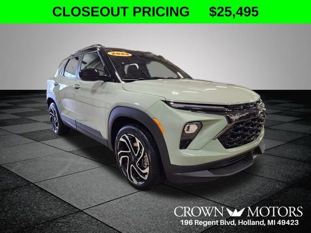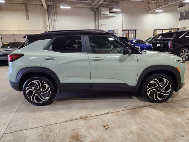 Clean CARFAX. Certified. Cacti Green 2024 Chevrolet TrailBlazer RS AWD 9-Speed Automatic 1.3L Ecotec Turbo DOHC SIDI w/VVT **ONE OWNER**, ** LOW MILES**, **GM CERTIFIED**, **ACCIDENT FREE**, **LOCAL TRADE IN**, Chevrolet Certified Pre-Owned Certified, AWD, 1 Type-A & 1 Type-C USB Charging-Only Ports, 1 Type-A & 1 Type-C USB Ports, 11" Diagonal HD Color Touchscreen, 120-Volt Power Outlet, 2-Way Power Driver Lumbar Seat Adjuster, 3.17 Final Drive Axle Ratio, 4-Way Manual Front Passenger Seat Adjuster, 4-Wheel Disc Brakes, 6 Speakers, 6-Speaker Audio System Feature w/Amplifier, 8-Way Power Driver Seat Adjuster, ABS brakes, Air Conditioning, Alloy wheels, AM/FM radio: SiriusXM, Auto High-beam Headlights, Brake assist, Bumpers: body-color, Cabin Humidity Sensor, Chevrolet Connected Access Capable, Compass, Convenience Package, Delay-off headlights, Driver & Front Passenger Illuminated Vanity Mirrors, Driver Confidence Package, Driver door bin, Driver vanity mirror, Dual front impact airbags, Dual front side impact airbags, Dual-Pane Panoramic Power Sunroof, Electronic Stability Control, Emergency communication system: OnStar and Chevrolet connected services capable, Evotex Seat Trim, Exterior Parking Camera Rear, Flat-Folding Front Passenger Seatback, Front & Rear All-Weather Floor Liners (LPO), Front anti-roll bar, Front Bucket Seats, Front Center Armrest, Front reading lights, Front wheel independent suspension, Fully automatic headlights, Hands-Free Power Programmable Liftgate, Heated door mirrors, Heated Driver & Front Passenger Seats, Heated front seats, Heated steering wheel, Illuminated entry, Inside Rear-View Auto-Dimming Mirror, Knee airbag, Lane Change Alert w/Side Blind Zone Alert, Low tire pressure warning, Mosaic Black Metallic Two-Tone Roof, Occupant sensing airbag, Overhead airbag, Overhead console, Panic alarm, Passenger door bin, Passenger vanity mirror, Power door mirrors, Power driver seat, Power steering, Power windows, Preferred Equipment Group 1RS, Premium Carpeted Floor Mats, Radio data system, Radio: AM/FM Stereo Audio System, Rear Cross Traffic Alert, Rear Park Assist, Rear seat center armrest, Rear side impact airbag, Rear window defroster, Rear window wiper, Remote keyless entry, Ride & Handling Suspension, Security system, Single-Zone Auto Climate Control Air Conditioning, SiriusXM, Speed control, Split folding rear seat, Spoiler, Steering wheel mounted audio controls, Tachometer, Telescoping steering wheel, Tilt steering wheel, Traction control, Trip computer, Variably intermittent wipers, Wheels: 19" High Gloss Black Machined Aluminum, Winter/Summer Floor Mat Package (LPO), Wireless Apple CarPlay/Android Auto, Wireless Charging, AWD.