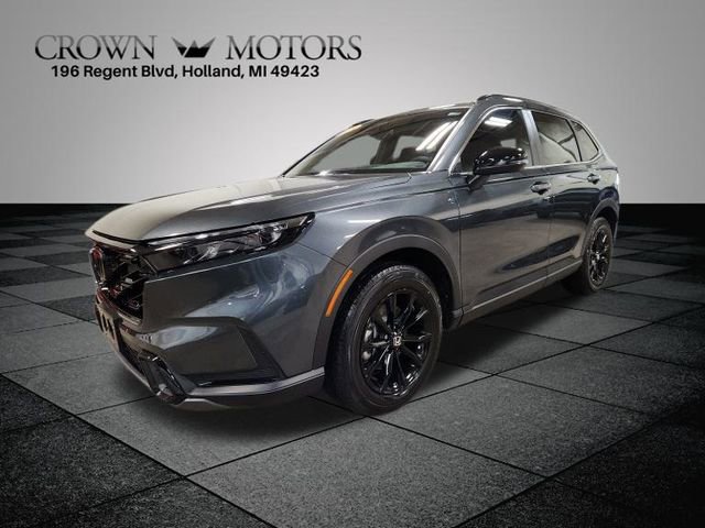 CARFAX One-Owner. Certified. White 2024 Honda CR-V Hybrid Sport AWD eCVT 2.0L I4 DOHC 16V **ONE OWNER**, **HONDA CERTIFIED**, **ACCIDENT FREE**, HondaTrue Certified Certified, 2.0L I4 DOHC 16V, AWD, 4-Wheel Disc Brakes, 4.438 Axle Ratio, 6 Speakers, ABS brakes, Adaptive Cruise Control: Adaptive Cruise Control (ACC) with Low-Speed Follow, Air Conditioning, Alloy wheels, Apple CarPlay/Android Auto, Auto High-beam Headlights, Automatic temperature control, Blind Spot Information (BSI) System warning, Brake assist, Bumpers: body-color, Cloth Seat Trim, Compass, Delay-off headlights, Driver door bin, Driver vanity mirror, Dual front impact airbags, Dual front side impact airbags, Electronic Stability Control, Exterior Parking Camera Rear, Four wheel independent suspension, Front anti-roll bar, Front Bucket Seats, Front Center Armrest, Front dual zone A/C, Front reading lights, Fully automatic headlights, Heated door mirrors, Heated Front Bucket Seats, Heated front seats, Illuminated entry, Knee airbag, Leather Shift Knob, Leather steering wheel, Low tire pressure warning, Occupant sensing airbag, Outside temperature display, Overhead airbag, Overhead console, Panic alarm, Passenger door bin, Passenger vanity mirror, Power door mirrors, Power driver seat, Power moonroof, Power steering, Power windows, Radio data system, Radio: 240-Watt AM/FM Audio System, Rear anti-roll bar, Rear reading lights, Rear seat center armrest, Rear side impact airbag, Rear window defroster, Rear window wiper, Remote keyless entry, Security system, Speed control, Speed-sensing steering, Speed-Sensitive Wipers, Split folding rear seat, Spoiler, Steering wheel mounted audio controls, Telescoping steering wheel, Tilt steering wheel, Traction control, Trip computer, Turn signal indicator mirrors, Variably intermittent wipers, Wheels: 18" Berlina Black Alloy, 2.0L I4 DOHC 16V, AWD.
