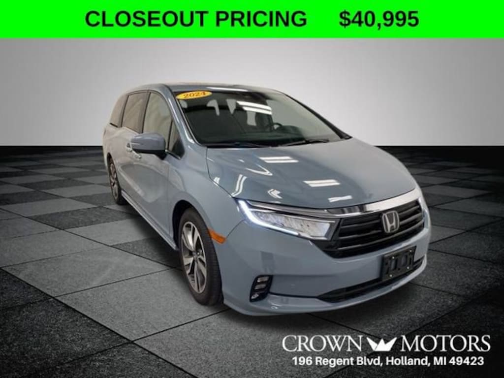 CARFAX One-Owner. Certified. Sonic Gray Pearl 2024 Honda Odyssey Touring FWD 10-Speed Automatic 3.5L V6 SOHC i-VTEC 24V ** LOW MILES**, **HONDA CERTIFIED**, HondaTrue Certified Certified, 3.61 Axle Ratio, 3rd row seats: split-bench, 4-Wheel Disc Brakes, 7 Speakers, A/V remote: CabinControl, ABS brakes, Adaptive Cruise Control: Adaptive Cruise Control (ACC) with Low-Speed Follow, Air Conditioning, Alloy wheels, AM/FM radio: SiriusXM, Anti-whiplash front head restraints, Apple CarPlay/Android Auto, Auto High-beam Headlights, Auto-dimming Rear-View mirror, Automatic temperature control, Blind Spot Information (BSI) System warning, Brake assist, Bumpers: body-color, CD player, Compass, Delay-off headlights, Driver door bin, Driver vanity mirror, Driver's Seat Mounted Armrest, Dual front impact airbags, Dual front side impact airbags, DVD-Audio, Electronic Stability Control, Emergency communication system: HondaLink, Exterior Parking Camera Rear, Four wheel independent suspension, Front anti-roll bar, Front Bucket Seats, Front dual zone A/C, Front fog lights, Front reading lights, Fully automatic headlights, Garage door transmitter: HomeLink, Headphones, Heated door mirrors, Heated Front Bucket Seats, Heated front seats, Illuminated entry, Knee airbag, Lane departure: Lane Keeping Assist System (LKAS) active, Leather Seat Trim, Leather steering wheel, Low tire pressure warning, Memory seat, Navigation system: Honda Satellite-Linked Navigation System, Occupant sensing airbag, Outside temperature display, Overhead airbag, Overhead console, Panic alarm, Passenger door bin, Passenger seat mounted armrest, Passenger vanity mirror, Power door mirrors, Power driver seat, Power Liftgate, Power moonroof, Power passenger seat, Power steering, Power windows, Radio data system, Radio: 160-Watt AM/FM/HD/SiriusXM Audio System, Rear air conditioning, Rear anti-roll bar, Rear audio controls, Rear reading lights, Rear seat center armrest, Rear window defroster, Rear window wiper, Reclining 3rd row seat, Remote keyless entry, Security system, Speed control, Speed-sensing steering, Speed-Sensitive Wipers, Split folding rear seat, Spoiler, Steering wheel mounted audio controls, Tachometer, Telescoping steering wheel, Tilt steering wheel, Traction control, Trip computer, Turn signal indicator mirrors, Variably intermittent wipers, Wheels: 19" Machine-Finished Alloy.