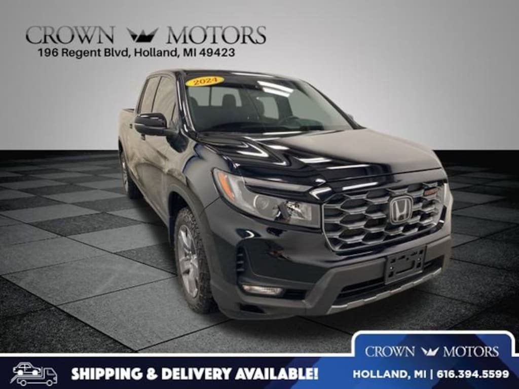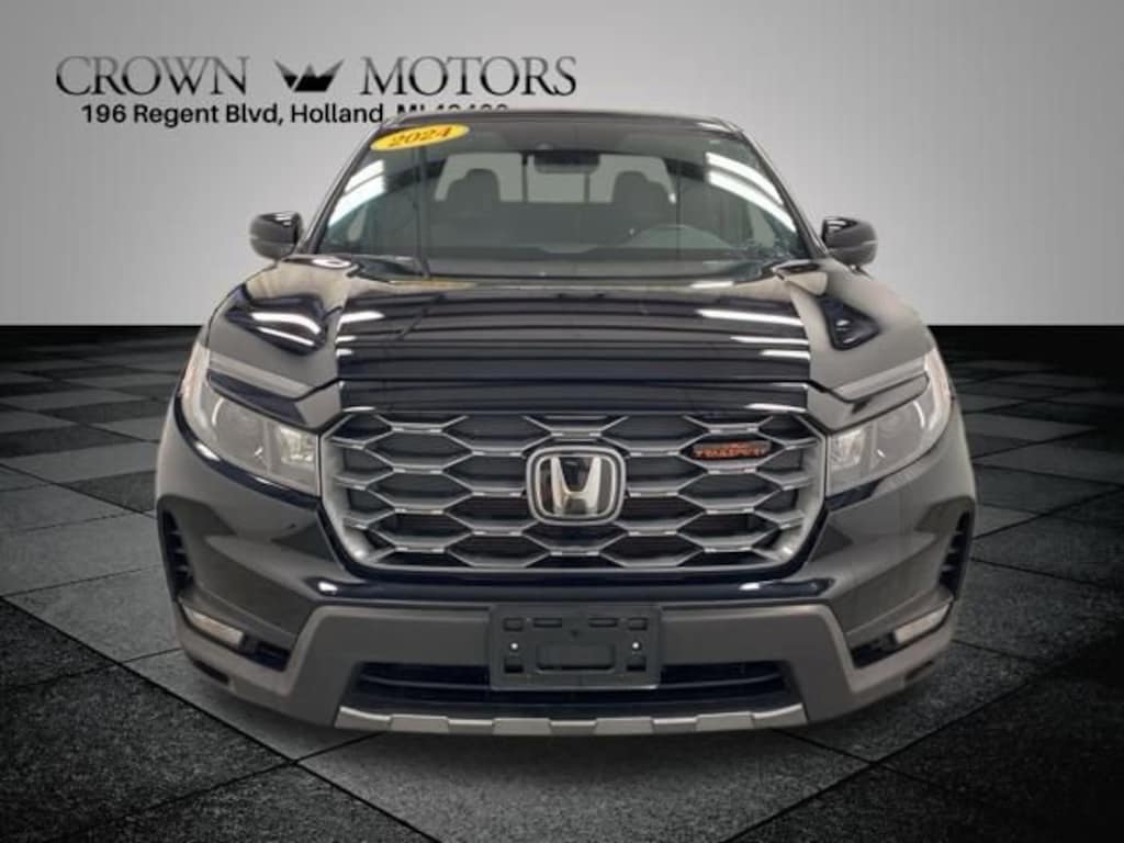 CARFAX One-Owner. Clean CARFAX. Certified. Crystal Black Pearl 2024 Honda Ridgeline TrailSport AWD 9-Speed Automatic 3.5L V6 SOHC i-VTEC 24V **ONE OWNER**, **HONDA CERTIFIED**, **ACCIDENT FREE**, HondaTrue Certified Certified, AWD, Black Artificial Leather, 4-Wheel Disc Brakes, 4.33 Axle Ratio, 7 Speakers, ABS brakes, Air Conditioning, Alloy wheels, AM/FM radio: SiriusXM, Auto-dimming Rear-View mirror, Automatic temperature control, Blind Spot Information (BSI) System warning, Bluetooth® Hands-Free Link, Brake assist, Bumpers: body-color, Compass, Delay-off headlights, Driver door bin, Driver vanity mirror, Driver's Seat Mounted Armrest, Dual front impact airbags, Dual front side impact airbags, Electronic Stability Control, Emergency communication system: HondaLink Assist, Exterior Parking Camera Rear, Four wheel independent suspension, Front anti-roll bar, Front Bucket Seats, Front dual zone A/C, Front fog lights, Front reading lights, Fully automatic headlights, Garage door transmitter: HomeLink, Heated door mirrors, Heated Front Bucket Seats, Heated front seats, Honda Satellite-Linked Navigation System, Illuminated entry, Leather steering wheel, Leatherette Seat Trim, Low tire pressure warning, Memory seat, Navigation system: Honda Satellite-Linked Navigation System, Occupant sensing airbag, Outside temperature display, Overhead airbag, Overhead console, Panic alarm, Passenger door bin, Passenger seat mounted armrest, Passenger vanity mirror, Power door mirrors, Power driver seat, Power moonroof, Power passenger seat, Power steering, Power windows, Radio data system, Radio: 215-Watt Audio System w/7 Speakers, Rear air conditioning, Rear anti-roll bar, Rear reading lights, Rear seat center armrest, Rear step bumper, Rear window defroster, Remote keyless entry, Security system, SiriusXM, Speed control, Speed-sensing steering, Split folding rear seat, Steering wheel mounted audio controls, Tachometer, Telescoping steering wheel, Tilt steering wheel, Traction control, Trip computer, Turn signal indicator mirrors, Variably intermittent wipers, Wheels: 18" TrailSport Pewter Gray Alloy, Wireless Apple CarPlay/Wireless Android Auto, AWD, Black Artificial Leather.