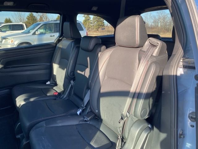 CARFAX One-Owner. Clean CARFAX. Certified. Sonic Gray Pearl 2025 Honda Odyssey Sport-L FWD 10-Speed Automatic 3.5L V6 SOHC i-VTEC 24V **ONE OWNER**, **LEATHER**, **ACCIDENT FREE**, HondaTrue Certified Certified, 3rd row seats: split-bench, 4-Wheel Disc Brakes, 7 Speakers, ABS brakes, Adaptive Cruise Control: Adaptive Cruise Control (ACC) with Low-Speed Follow, Air Conditioning, Alloy wheels, AM/FM radio: SiriusXM, Anti-whiplash front head restraints, Apple CarPlay/Android Auto, Auto High-beam Headlights, Auto-dimming Rear-View mirror, Automatic temperature control, Blind Spot Information (BSI) System warning, Brake assist, Bumpers: body-color, Delay-off headlights, Driver door bin, Driver vanity mirror, Driver's Seat Mounted Armrest, Dual front impact airbags, Dual front side impact airbags, Electronic Stability Control, Exterior Parking Camera Rear, Four wheel independent suspension, Front anti-roll bar, Front Bucket Seats, Front dual zone A/C, Front fog lights, Front reading lights, Fully automatic headlights, Garage door transmitter: HomeLink, Heated door mirrors, Heated Front Bucket Seats, Heated front seats, Illuminated entry, Knee airbag, Lane departure: Lane Keeping Assist System (LKAS) active, Leather steering wheel, Leather Trimmed Seats, Low tire pressure warning, Memory seat, Occupant sensing airbag, Outside temperature display, Overhead airbag, Overhead console, Panic alarm, Passenger door bin, Passenger seat mounted armrest, Passenger vanity mirror, Power door mirrors, Power driver seat, Power Liftgate, Power moonroof, Power passenger seat, Power steering, Power windows, Radio data system, Radio: 160-Watt AM/FM/HD/SiriusXM Audio System, Rear air conditioning, Rear anti-roll bar, Rear reading lights, Rear seat center armrest, Rear window defroster, Rear window wiper, Reclining 3rd row seat, Remote keyless entry, Security system, Speed control, Speed-sensing steering, Speed-Sensitive Wipers, Split folding rear seat, Spoiler, Steering wheel mounted audio controls, Tachometer, Telescoping steering wheel, Tilt steering wheel, Traction control, Trip computer, Turn signal indicator mirrors, Variably intermittent wipers, Wheels: 19" Gloss Black Alloy.