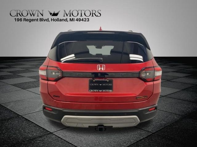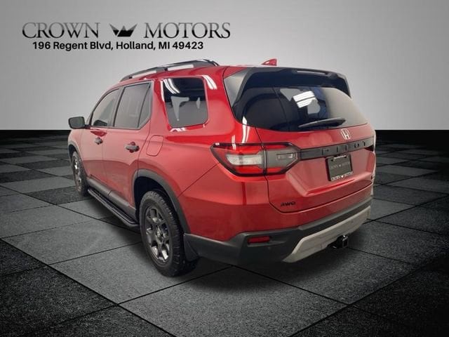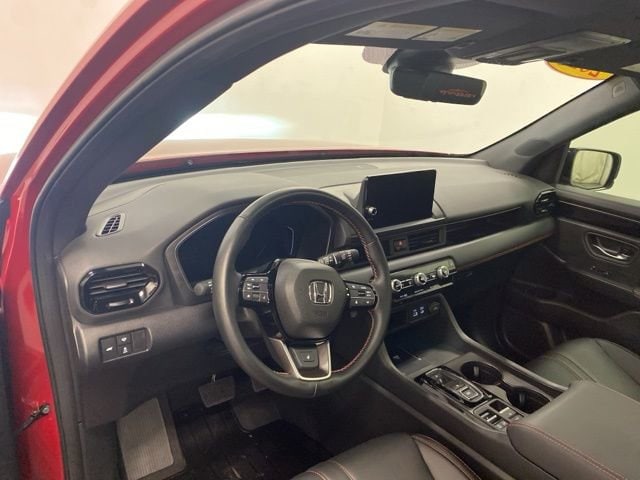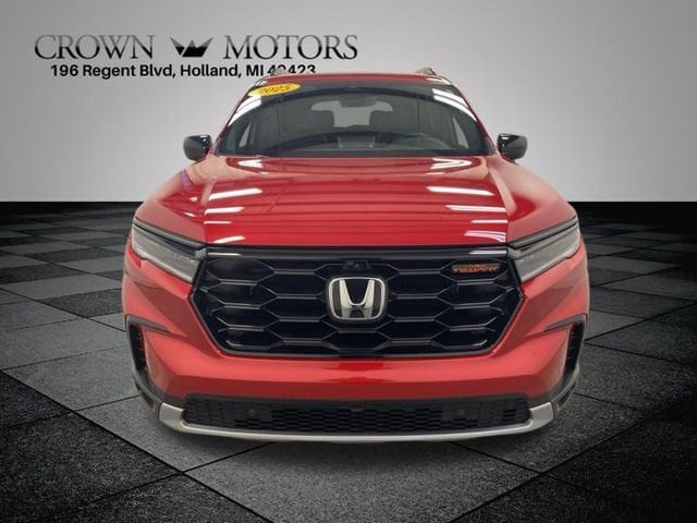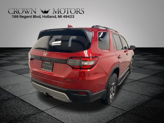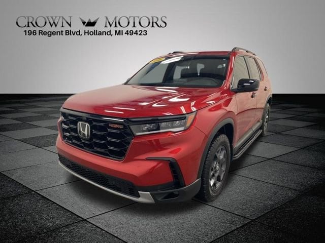 CARFAX One-Owner. Clean CARFAX. Certified. Radiant Red Metallic II 2025 Honda Pilot TrailSport AWD 10-Speed Automatic 3.5L V6 DOHC 24V **ONE OWNER**, ** LOW MILES**, **HONDA CERTIFIED**, **ACCIDENT FREE**, HondaTrue Certified Certified, AWD, 3rd row seats: split-bench, 4-Wheel Disc Brakes, 4.167 Axle Ratio, 9 Speakers, ABS brakes, Adaptive Cruise Control: Adaptive Cruise Control (ACC) with Low-Speed Follow, Air Conditioning, Alloy wheels, AM/FM radio: SiriusXM, Apple CarPlay/Android Auto, Auto High-beam Headlights, Auto-dimming Rear-View mirror, Automatic temperature control, Blind Spot Information (BSI) System warning, Brake assist, Bumpers: body-color, Delay-off headlights, Driver door bin, Driver vanity mirror, Dual front impact airbags, Dual front side impact airbags, Durable Synthetic Leather Seat Trim, Electronic Stability Control, Emergency communication system: HondaLink Assist, Exterior Parking Camera Rear, Four wheel independent suspension, Front anti-roll bar, Front Bucket Seats, Front Center Armrest, Front dual zone A/C, Front fog lights, Front reading lights, Fully automatic headlights, Garage door transmitter: HomeLink, Heated door mirrors, Heated Front Bucket Seats, Heated front seats, Illuminated entry, Knee airbag, Lane departure: Lane Keeping Assist System (LKAS) active, Low tire pressure warning, Memory seat, Occupant sensing airbag, Outside temperature display, Overhead airbag, Overhead console, Panic alarm, Passenger door bin, Passenger vanity mirror, Power door mirrors, Power driver seat, Power Liftgate, Power moonroof, Power passenger seat, Power steering, Power windows, Radio data system, Radio: 245-Watt Audio System, Rear air conditioning, Rear anti-roll bar, Rear reading lights, Rear window defroster, Rear window wiper, Reclining 3rd row seat, Remote keyless entry, Security system, SiriusXM, Speed control, Speed-sensing steering, Speed-Sensitive Wipers, Split folding rear seat, Spoiler, Steering wheel mounted audio controls, Tachometer, Telescoping steering wheel, Tilt steering wheel, Traction control, Trip computer, Turn signal indicator mirrors, Variably intermittent wipers, Wheels: 18" Shark Gray with Black Lug Nuts, AWD.