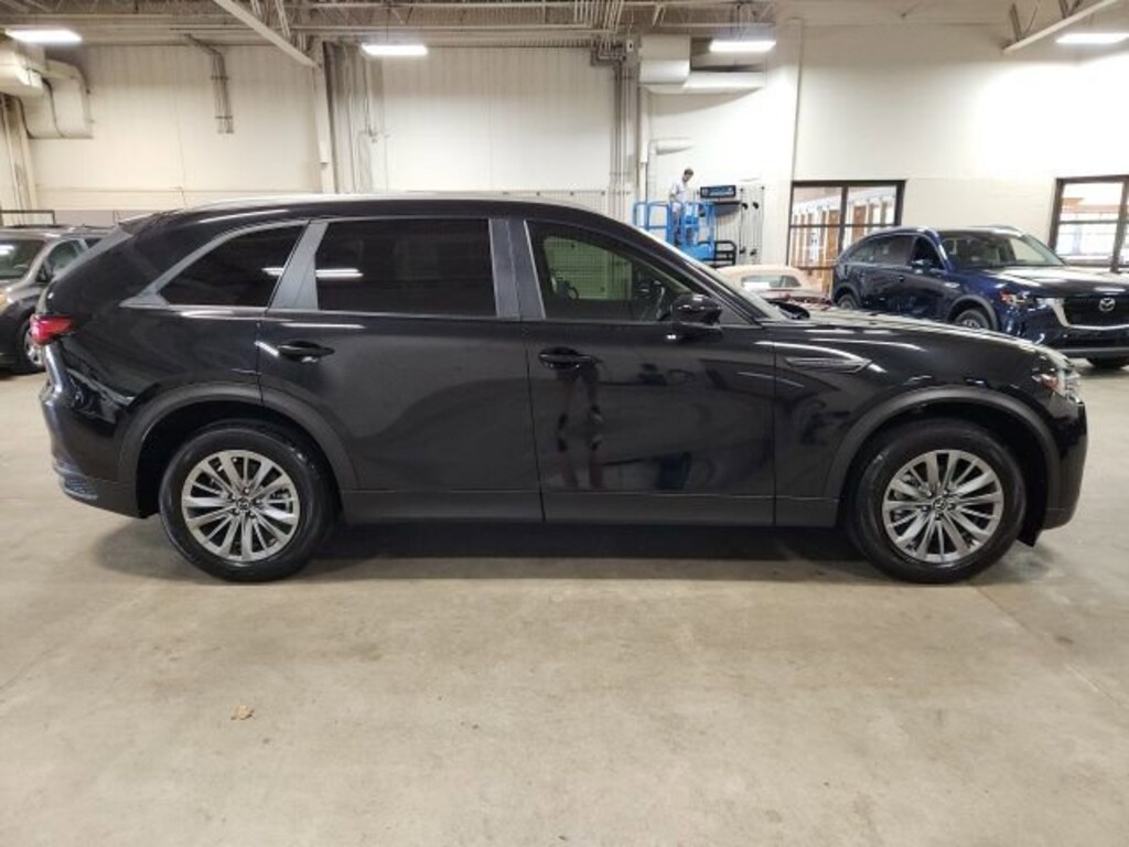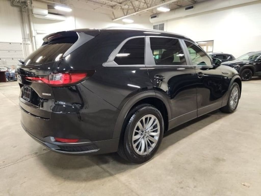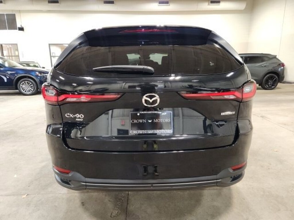 CARFAX One-Owner. Clean CARFAX. Certified. Jet Black Mica 2024 Mazda CX-90 3.3 Turbo Select AWD 8-Speed Automatic I6 Turbo **ONE OWNER**, **MAZDA CERTIFIED**, **ACCIDENT FREE**, Mazda Certified Pre-Owned Certified, 3.692 Axle Ratio, 3rd row seats: bench, 4-Wheel Disc Brakes, 8 Speakers, ABS brakes, Air Conditioning, Alloy wheels, AM/FM radio, AppLink/Apple CarPlay and Android Auto, Auto High-beam Headlights, Automatic temperature control, Brake assist, Bumpers: body-color, Compass, Delay-off headlights, Driver door bin, Driver vanity mirror, Dual front impact airbags, Dual front side impact airbags, E911 Automatic Emergency Notification, Electronic Stability Control, Emergency communication system: MAZDA CONNECT, Exterior Parking Camera Rear, Four wheel independent suspension, Front anti-roll bar, Front Bucket Seats, Front Center Armrest w/Storage, Front dual zone A/C, Front reading lights, Fully automatic headlights, Heated door mirrors, Illuminated entry, Infotainment System Voice Command, Knee airbag, Leather Shift Knob, Leather steering wheel, Leatherette Seat Trim, Low tire pressure warning, Mazda Connected Services, Occupant sensing airbag, Outside temperature display, Overhead airbag, Overhead console, Pandora Internet Radio Integration, Panic alarm, Passenger door bin, Passenger vanity mirror, Power door mirrors, Power driver seat, Power Liftgate, Power steering, Power windows, Radio Broadcast Data System Program Information, Radio data system, Radio: AM/FM Sound System, Rain sensing wipers, Rear air conditioning, Rear anti-roll bar, Rear reading lights, Rear seat center armrest, Rear window defroster, Rear window wiper, Remote keyless entry, SMS Text Msg Audio Delivery & Reply, Speed control, Speed-sensing steering, Split folding rear seat, Spoiler, Steering wheel mounted audio controls, Tachometer, Telescoping steering wheel, Tilt steering wheel, Traction control, Trip computer, Turn signal indicator mirrors, Variably intermittent wipers, Wheels: 19" x 8.5J Aluminum Alloy.