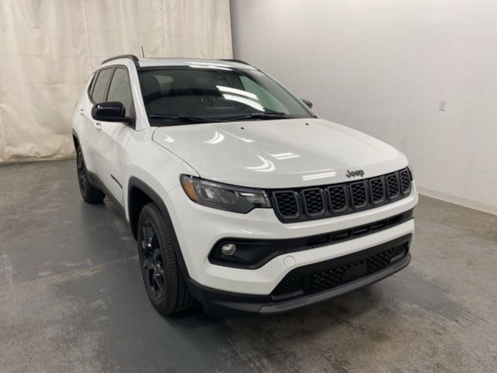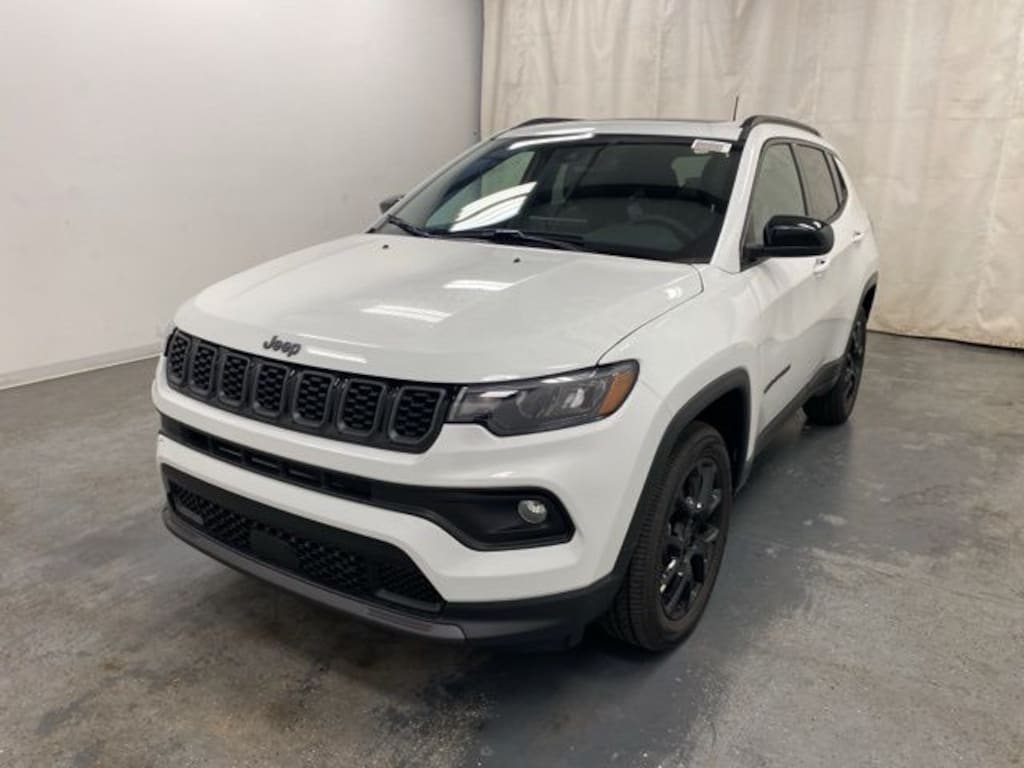 2025 Jeep Compass Latitude Bright White Clearcoat 4WD, 10.1" Touchscreen Display, 2nd Row USB Type A/C Charge Only, Air Conditioning ATC w/Dual Zone Control, All-Season Floor Mats, Altitude Special Edition, Auto-Dimming Rear-View Mirror, Black Day Light Opening Moldings, Convenience Group, Foot Activated Open 'N Go Liftgate, Gloss Black Surround/Neutral Gray Rings, Humidity Sensor, Neutral Gray Exterior Badging, Piano Black Interior Accents, Power 2-Way Driver Lumbar Adjust, Power Adjust 8-Way Driver Seat, Power Front/Fixed Rear Full Sunroof, Power Liftgate, Premium Alpine Speaker System, Quick Order Package 29J, Reversible Carpet/Vinyl Cargo Mat, Sliding Sun Visors w/Illuminated Mirrors, Sun and Sound Group, Wheels: 18" x 7" Gloss Black Painted Aluminum, Windshield Wiper De-Icer, 3.73 Final Drive Ratio, 4-Wheel Disc Brakes, 6 Speakers, ABS brakes, Air Conditioning, Alloy wheels, AM/FM radio: SiriusXM, Auto High-beam Headlights, Brake assist, Bumpers: body-color, Compass, Delay-off headlights, Driver door bin, Driver vanity mirror, Dual front impact airbags, Dual front side impact airbags, Electronic Stability Control, Emergency communication system: Jeep Connect, Four wheel independent suspension, Front anti-roll bar, Front Bucket Seats, Front Center Armrest w/Storage, Front fog lights, Front reading lights, Fully automatic headlights, Heated door mirrors, Heated front seats, Heated steering wheel, Illuminated entry, Knee airbag, Leather Shift Knob, Leather steering wheel, Low tire pressure warning, Occupant sensing airbag, Outside temperature display, Overhead airbag, Overhead console, Panic alarm, ParkView Rear Back-Up Camera, Passenger door bin, Passenger vanity mirror, Power door mirrors, Power steering, Power windows, Premium Cloth/Vinyl Bucket Seats, Radio: Uconnect 5 w/8.4" Display, Rear anti-roll bar, Rear seat center armrest, Rear window defroster, Rear window wiper, Remote keyless entry, Security system, Speed control, Split folding rear seat, Spoiler, Steering wheel mounted audio controls, Tachometer, Telescoping steering wheel, Tilt steering wheel, Traction control, Trip computer, Variably intermittent wipers, 4WD, 10.1" Touchscreen Display, 2nd Row USB Type A/C Charge Only, Air Conditioning ATC w/Dual Zone Control, All-Season Floor Mats, Altitude Special Edition, Auto-Dimming Rear-View Mirror, Black Day Light Opening Moldings, Convenience Group, Foot Activated Open 'N Go Liftgate, Gloss Black Surround/Neutral Gray Rings, Humidity Sensor, Neutral Gray Exterior Badging, Piano Black Interior Accents, Power 2-Way Driver Lumbar Adjust, Power Adjust 8-Way Driver Seat, Power Front/Fixed Rear Full Sunroof, Power Liftgate, Premium Alpine Speaker System, Quick Order Package 29J, Reversible Carpet/Vinyl Cargo Mat, Sliding Sun Visors w/Illuminated Mirrors, Sun and Sound Group, Wheels: 18" x 7" Gloss Black Painted Aluminum, Windshield Wiper De-Icer. 24/32 City/Highway MPG