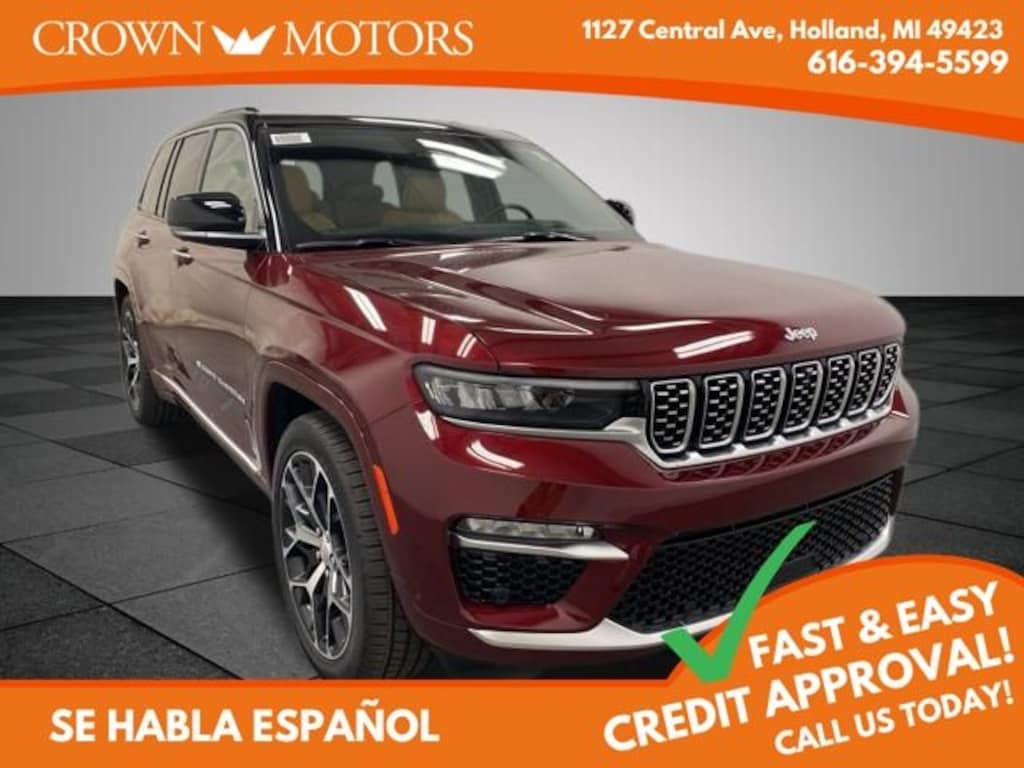 2025 Jeep Grand Cherokee Summit Velvet Red Pearlcoat 4WD, 19 Speakers High Performance Audio, 2nd-Row Manual Window Shades, 950 Watt Amplifier, Active Noise Control System, ADV Protech Group IV, Deluxe Headliner, Front Passenger Interactive Display, Heads-Up Display, Luxury Tech Group V, Navigation System, Night Vision w/Pedestrian-Animal Detection, Palermo Leather Door Trim, Palermo Leather Seats, Quick Order Package 23U Summit Reserve, Rearview Autodim Digital Display Mirror, Ventilated Rear Seats, Wheels: 21" x 9" Machined Face/Painted Aluminum, Windshield Wiper De-Icer, Wireless Charging Pad, 10 Speakers, 4-Wheel Disc Brakes, ABS brakes, Adaptive suspension, Air Conditioning, Alloy wheels, AM/FM radio: SiriusXM with 360L, Anti-whiplash front head restraints, Audio memory, Auto High-beam Headlights, Auto-dimming door mirrors, Auto-dimming Rear-View mirror, Auto-leveling suspension, Automatic temperature control, Auxiliary Battery, Brake assist, Bumpers: body-color, Compass, Delay-off headlights, Driver door bin, Driver vanity mirror, Dual front impact airbags, Dual front side impact airbags, Electronic Stability Control, Emergency communication system, Four wheel independent suspension, Front anti-roll bar, Front Bucket Seats, Front Center Armrest w/Storage, Front dual zone A/C, Front fog lights, Front reading lights, Fully automatic headlights, Garage door transmitter, Genuine wood dashboard insert, Genuine wood door panel insert, Heated door mirrors, Heated front seats, Heated rear seats, Heated steering wheel, Illuminated entry, Knee airbag, Leather steering wheel, Low tire pressure warning, Memory seat, Model Year Tracking, Nappa Leather Seats, Normal Duty Suspension, Occupant sensing airbag, Outside temperature display, Overhead airbag, Overhead console, Panic alarm, Passenger door bin, Passenger vanity mirror, Power door mirrors, Power driver seat, Power Liftgate, Power moonroof, Power passenger seat, Power steering, Power windows, Radio data system, Radio: Uconnect 5 Nav w/10.1" Display, Rain sensing wipers, Rear air conditioning, Rear anti-roll bar, Rear dual zone A/C, Rear reading lights, Rear seat center armrest, Rear window defroster, Rear window wiper, Remote keyless entry, Security system, Speed control, Speed-Sensitive Wipers, Split folding rear seat, Spoiler, Steering wheel memory, Steering wheel mounted audio controls, Tachometer, Telescoping steering wheel, Tilt steering wheel, Traction control, Trip computer, Turn signal indicator mirrors, Variably intermittent wipers, Ventilated front seats, Voltmeter, Wheels: 20" x 8.5" Fully Painted Aluminum Silver, 4WD, 19 Speakers High Performance Audio, 2nd-Row Manual Window Shades, 950 Watt Amplifier, Active Noise Control System, ADV Protech Group IV, Deluxe Head Price includes: $2250 - 2025 National Retail Bonus Ca