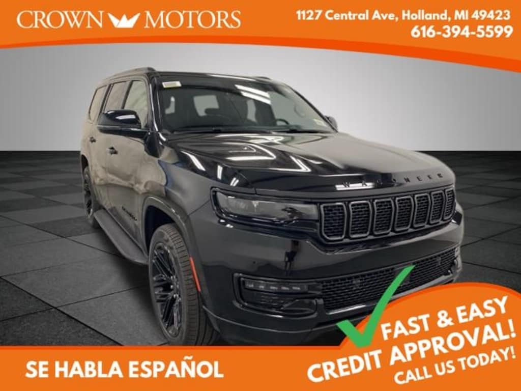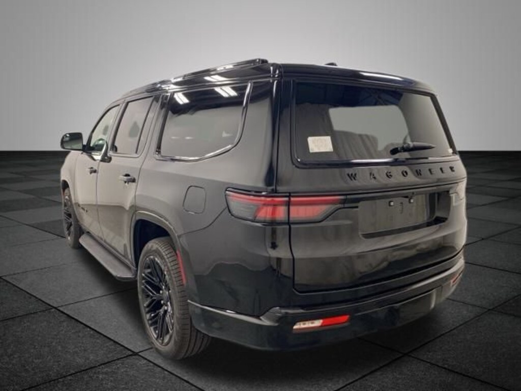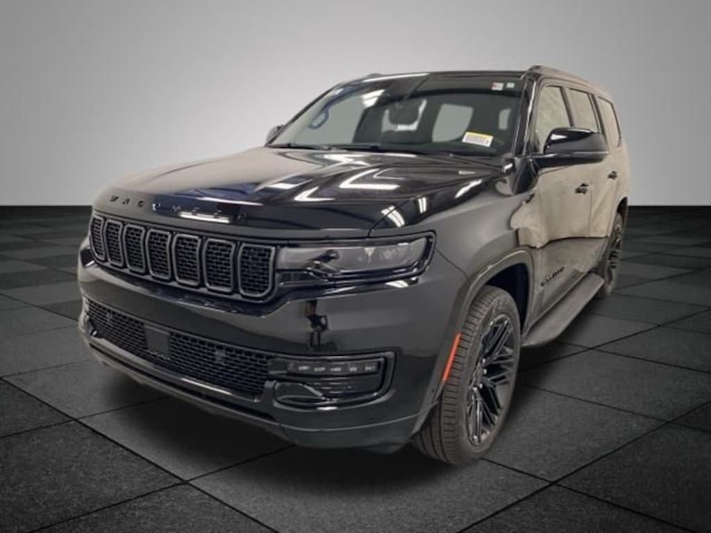 2025 Jeep Wagoneer Series II Diamond Black Crystal Pearlcoat 3 Panel Sunroof, Adjustable Roof Rail Crossbars, Black Exterior Accents, Carbide Appearance Package, Cargo Cover, Navigation System, Premium Group I, Quick Order Package 25F Carbide, Reversible Carpet/Vinyl Cargo Mat, Wheels: 20" x 9" Gloss Black Painted Aluminum, 10 Speakers, 118 MPH Maximum Speed Calibration, 3.55 Rear Axle Ratio, 3rd row seats: bench, 4-Wheel Disc Brakes, ABS brakes, Air Conditioning, Alloy wheels, AM/FM radio: SiriusXM with 360L, Anti-whiplash front head restraints, Apple CarPlay/Android Auto, Audio memory, Auto Adjust In Reverse Exterior Mirrors, Auto-dimming door mirrors, Auto-Dimming Exterior Driver Mirror, Auto-dimming Rear-View mirror, Auto-leveling suspension, Automatic temperature control, Brake assist, Bumpers: body-color, Compass, Delay-off headlights, Driver door bin, Driver vanity mirror, Driver's Seat Mounted Armrest, Dual front impact airbags, Dual front side impact airbags, Electronic Stability Control, Emergency communication system: Jeep Connect, Exterior Mirrors Approach Lamps, Exterior Mirrors w/Memory, Exterior Mirrors w/Supplemental Signals, Four wheel independent suspension, Front anti-roll bar, Front Bucket Seats, Front Center Armrest w/Storage, Front dual zone A/C, Front fog lights, Front reading lights, Fully automatic headlights, Garage door transmitter, Genuine wood console insert, Genuine wood dashboard insert, Genuine wood door panel insert, Heated door mirrors, Heated Exterior Mirrors, Heated front seats, Heated rear seats, Heated steering wheel, Illuminated entry, Knee airbag, Leather Trimmed Bucket Seats, Low tire pressure warning, Memory seat, Normal Duty Suspension, Occupant sensing airbag, Outside temperature display, Overhead airbag, Overhead console, Panic alarm, ParkView Rear Back-Up Camera, Passenger door bin, Passenger seat mounted armrest, Passenger vanity mirror, Power adjustable front head restraints, Power door mirrors, Power driver seat, Power Liftgate, Power passenger seat, Power steering, Power windows, Radio data system, Radio: Uconnect 5 Nav w/10.1" Display, Rain sensing wipers, Rear air conditioning, Rear anti-roll bar, Rear dual zone A/C, Rear reading lights, Rear seat center armrest, Rear window defroster, Rear window wiper, Reclining 3rd row seat, Remote keyless entry, Security system, Speed control, Speed-sensing steering, Speed-Sensitive Wipers, Split folding rear seat, Steering wheel memory, Steering wheel mounted audio controls, Tachometer, Telescoping steering wheel, Tilt steering wheel, Traction control, Trip computer, Turn signal indicator mirrors, Variably intermittent wipers, Ventilated front seats, Voltmeter, Wheels: 20" x 9.0" Premium 2 Aluminum, Wheels: 22" x 9.0" Painted Gloss Black, 3 Panel Sunroof, Adjustable Roof Rail Crossbars, Black Exterior Accents, Carbide Appearance Package, Cargo Cover, Navigation System, Premium Group I, Quick Order Package 25F Carbide, Reversible Carpet/Vinyl Cargo Mat, Wheels: 20" x 9" Gloss Black Painted Aluminum.