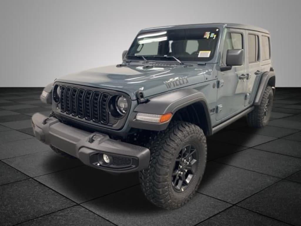 2026 Jeep Wrangler Willys Anvil Clear Coat ABS brakes, Compass, Electronic Stability Control, Illuminated entry, Low tire pressure warning, ParkView Rear Back-Up Camera, Remote keyless entry, Traction control, 3.45 Overall Top Gear Ratio, 4-Wheel Disc Brakes, 8 Speakers, Air Conditioning, AM/FM radio: SiriusXM with 360L, Apple CarPlay/Android Auto, Aux Battery, Brake assist, Cloth Low-Back Bucket Seats, Delay-off headlights, Driver door bin, Driver vanity mirror, Dual front impact airbags, Dual front side impact airbags, Front anti-roll bar, Front Bucket Seats, Front Center Armrest w/Storage, Front fog lights, Front reading lights, Integrated roll-over protection, Non-Lock Fuel Cap w/o Discriminator, Normal Duty Suspension, Occupant sensing airbag, Outside temperature display, Overhead airbag, Panic alarm, Passenger door bin, Passenger vanity mirror, Power steering, Power windows, Radio data system, Radio: Uconnect 5 w/12.3" Display, Rear anti-roll bar, Rear reading lights, Speed control, Split folding rear seat, Steering wheel mounted audio controls, Stop-Start Dual Battery System, Tachometer, Telescoping steering wheel, Tilt steering wheel, Trip computer, Variably intermittent wipers, Wheels: 17" x 7.5" Black Steel Styled, ABS brakes, Compass, Electronic Stability Control, Illuminated entry, Low tire pressure warning, ParkView Rear Back-Up Camera, Remote keyless entry, Traction control.