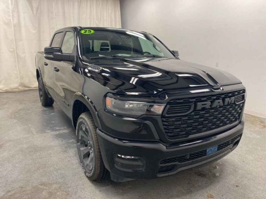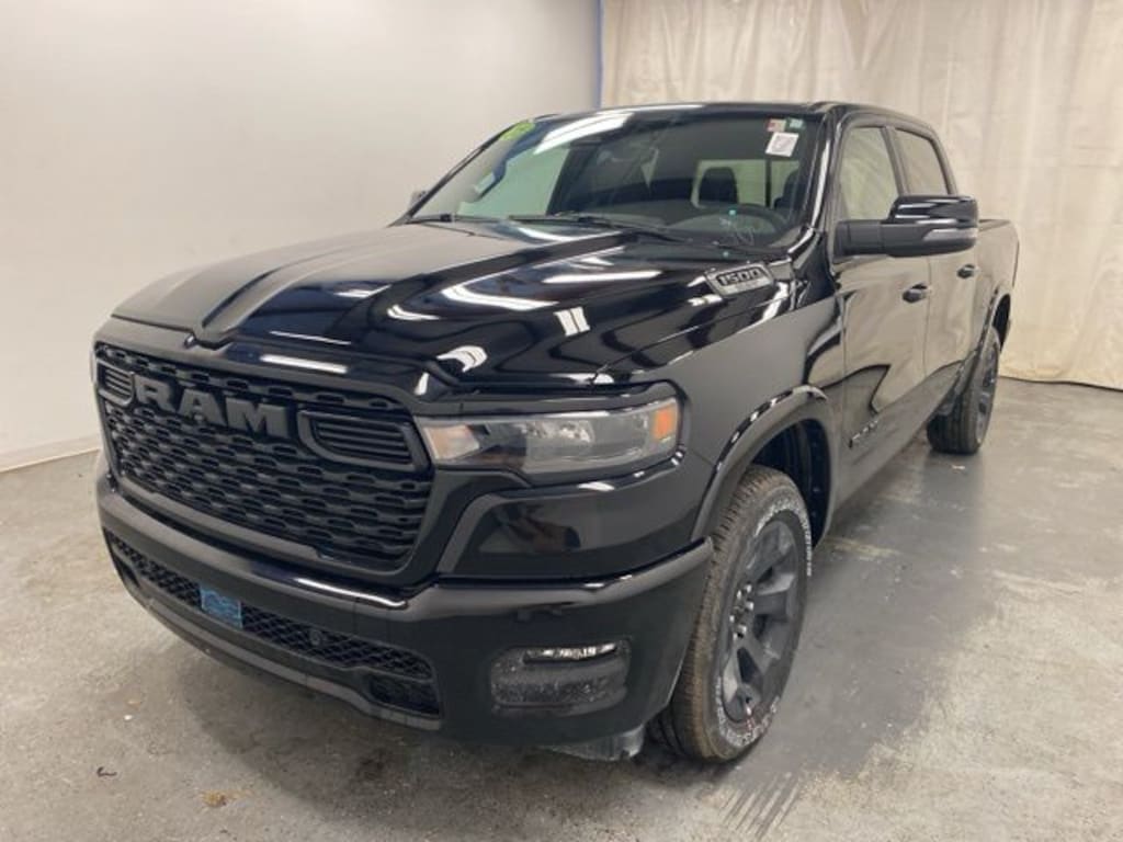 2025 Ram 1500 Big Horn/Lone Star Diamond Black Crystal Pearlcoat 115V Auxiliary Power Outlet, 115V Auxiliary Rear Power Outlet, 12" Touchscreen Display, 2nd Row In Floor Storage Bins, 3 Rear Seat Head Restraints, 4 Way Front Headrests, 4-Wheel Disc Brakes, 400W Inverter, 4G LTE Wi-Fi Hot Spot, 6 Speakers, 9 Amplified Speakers w/Subwoofer, ABS brakes, Accent Color Door Handles, Accent Color Premium Power Mirrors, Accent Color Tailgate Handle, Air Conditioning, Air Conditioning ATC w/Dual Zone Control, Alloy wheels, AM/FM radio, Anti-Spin Differential Rear Axle, Apple CarPlay, Apple CarPlay/Android Auto, Auto High-beam Headlights, Auto Power-Folding Mirrors, Auto-Dimming Exterior Driver Mirror, Auto-Dimming Rear-View Mirror, Big Horn Level 2 Equipment Group, Black Exterior Mirrors, Black Exterior Truck Badging, Black Headlamp Bezels, Black Interior Accents, Black Painted Exterior Mirrors Caps, Black Premium Power Mirrors, Black Tail Lamp Bezels, Body Color Front Bumper, Body Color Rear Bumper w/Step Pads, Brake assist, Bucket Seats, Bumpers: chrome, Cloth Bench Seat, Cluster 12" TFT Color Display, Cluster 7.0" TFT Color Display, Compass, Configurable Drive Mode, Connected Travel & Traffic Services, Connectivity - US/Canada, Convex Wide-Angle Exterior Mirror Insert, Delay-off headlights, Deluxe Cloth Bucket Seats, Driver door bin, Dual front impact airbags, Dual front side impact airbags, Electronic Stability Control, Exterior Mirrors Courtesy Lamps, Exterior Mirrors w/Heating Element, Exterior Mirrors w/Supplemental Signals, Front anti-roll bar, Front Center Armrest w/Storage, Front fog lights, Front reading lights, Front Seat Back Map Pockets, Front wheel independent suspension, Full Length Floor Console, Fully automatic headlights, Glove Box Lamp, Google Android Auto, GPS Antenna Input, GPS Navigation, Grille Black Surround Black Mesh, HD Radio, Heated door mirrors, Heated Front Seats, Heated Steering Wheel, Illuminated entry, Integrated Voice Command w/Bluetooth, Leather Wrapped Steering Wheel, LED Dome Lamp w/On/Off Switch, LED Footwell Lighting, Low tire pressure warning, Manual Adjust 4-Way Front Passenger Seat, Manual Folding Exterior Mirrors, Manufacturer's Statement of Origin, Media Hub w/2 Charge Only USBs, MOPAR Front & Rear Rubber Floor Mats, Night Edition, Occupant sensing airbag, Outside temperature display, Overhead airbag, Overhead console, Overhead LED Lamps, Panic alarm, ParkView Rear Back-Up Camera, Passenger door bin, Passenger vanity mirror, Power 2-Way Driver Lumbar Adjust, Power Adjust 8-Way Driver Seat, Power Adjustable Pedals, Power door mirrors, Power steering, Power windows, Premium Overhead Console, Quick Order Package 21Z Big Horn, Radio data system, Radio: Uconnect 5 Nav w/12.0" Display, Radio: Uconnect 5 W w/8.4" Display, RAM Grille Badge - Black, RAM Grille Badge - Chrome, Rear 60/40 Folding Seat, Rear anti-roll bar, Rear Center Armrest, Rear Power Sliding Window, Rear seat center armrest, Rear step bumper, Rear Window Defroster, Price includes: $750 - 2025 Midwest BC Regional Bonus C