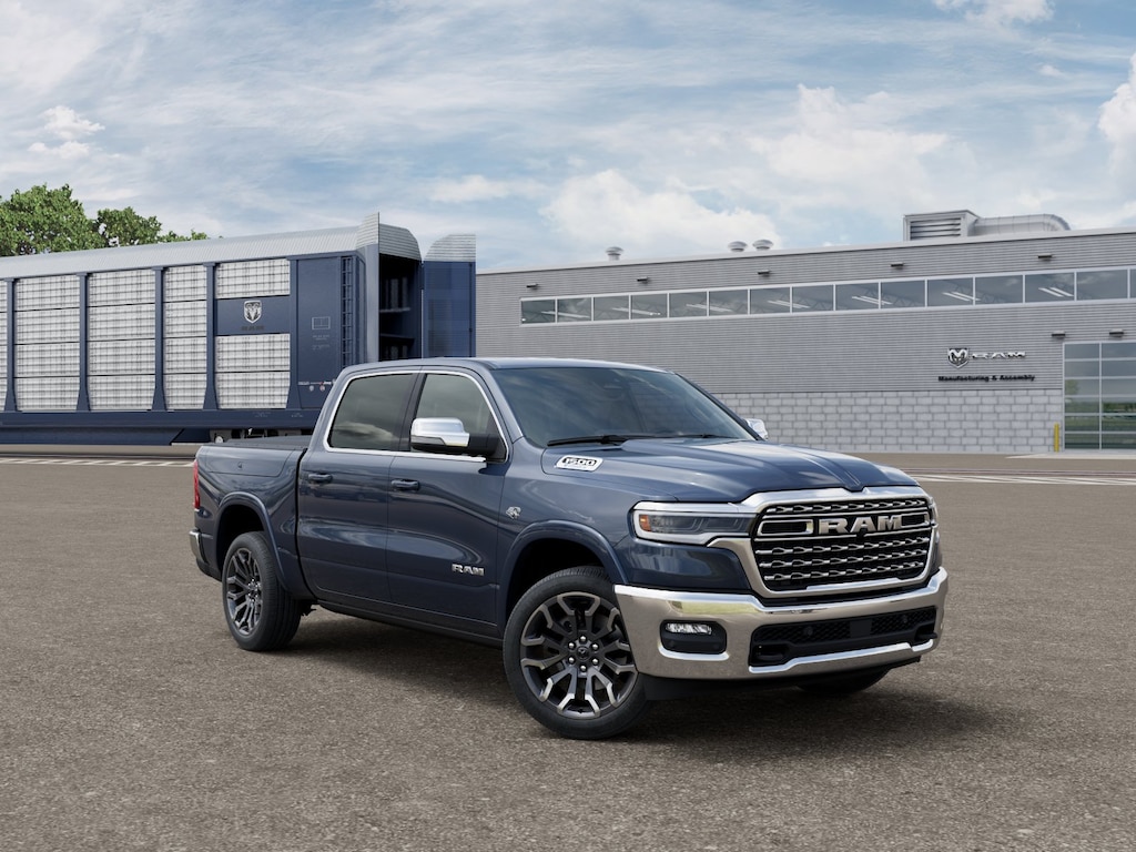2026 Ram 1500 Limited Forged Blue Metallic 19 Speakers, 3.92 Rear Axle Ratio, 4-Wheel Disc Brakes, 4G LTE Wi-Fi Hot Spot, ABS brakes, Active Noise Control System, Adjustable pedals, Air Conditioning, Alloy wheels, AM/FM radio, Apple CarPlay, Apple CarPlay/Android Auto, Audio memory, Auto High-beam Headlights, Auto Power-Folding Mirrors, Auto-dimming door mirrors, Auto-Dimming Exterior Driver Mirror, Auto-dimming Rear-View mirror, Auto-leveling suspension, Automatic temperature control, Bodyside moldings, Brake assist, Bumpers: chrome, Chrome Exterior Mirrors, Compass, Connected Travel and Traffic Services, Connectivity - US/Canada, Convex Wide-Angle Exterior Mirror Insert, Delay-off headlights, Disassociated Touchscreen Display, Driver door bin, Driver vanity mirror, Dual front impact airbags, Dual front side impact airbags, Electronic Stability Control, Exterior Mirrors Courtesy Lamps, Exterior Mirrors with Heating Element, Exterior Mirrors with Memory, Exterior Mirrors with Supplemental Signals, Exterior Parking Camera Rear, Front anti-roll bar, Front Bucket Seats, Front Center Armrest w/Storage, Front dual zone A/C, Front fog lights, Front reading lights, Front wheel independent suspension, Fully automatic headlights, Garage door transmitter, Genuine wood console insert, Genuine wood dashboard insert, Genuine wood door panel insert, Global Telematics Box Module, Google Android Auto, GPS Antenna Input, GPS Navigation, harman/kardon® Speakers, HD Radio, Heated door mirrors, Heated front seats, Heated rear seats, Heated steering wheel, Illuminated entry, Integrated Center Stack Radio, Integrated Voice Command with Bluetooth, Leather steering wheel, Low tire pressure warning, Memory seat, Navigation System, Occupant sensing airbag, Outside temperature display, Overhead airbag, Overhead console, Panic alarm, Passenger door bin, Passenger vanity mirror, Pedal memory, Power door mirrors, Power driver seat, Power passenger seat, Power steering, Power windows, Premium Quilted Leather Bucket Seats, Radio data system, Radio: Uconnect 5 Navigation with 12.0" Display, Rain sensing wipers, Rear anti-roll bar, Rear reading lights, Rear seat center armrest, Rear step bumper, Rear window defroster, Remote keyless entry, Security system, SiriusXM Radio Service, SiriusXM with 360L, Speed control, Split folding rear seat, Steering wheel mounted audio controls, Tachometer, Telescoping steering wheel, Tilt steering wheel, Traction control, Trip computer, Turn signal indicator mirrors, USB Host Flip, Variably intermittent wipers, Ventilated front seats, Ventilated rear seats, Voltmeter, Wheels: 20" x 9" Premium Paint/Polished.