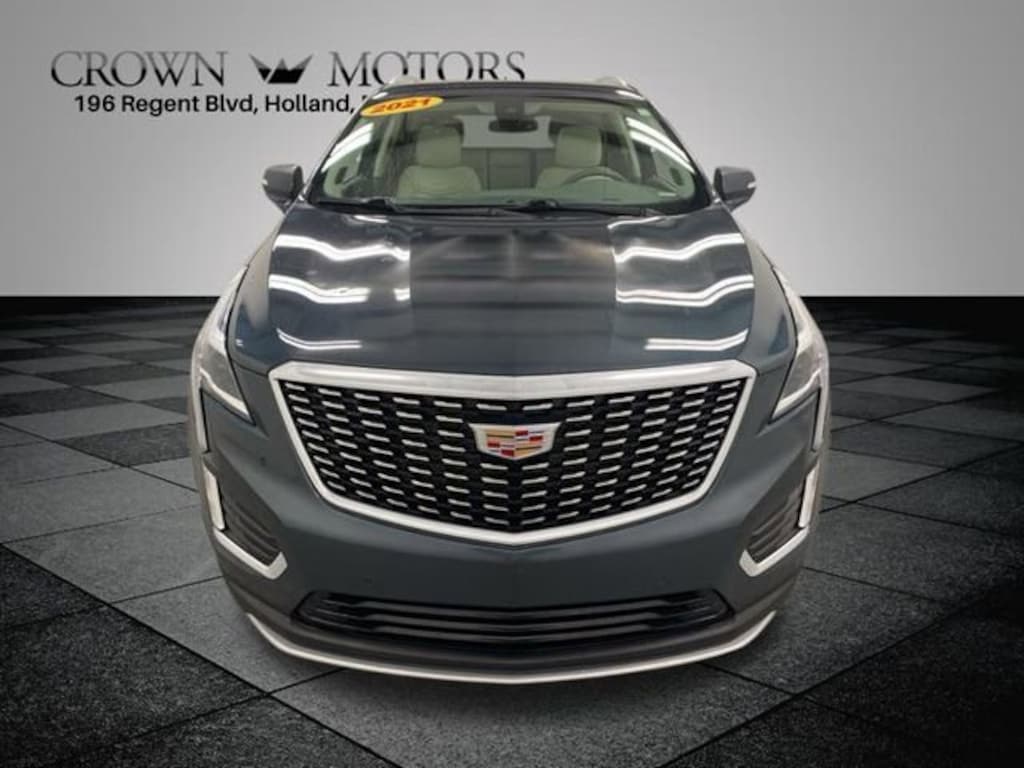 CARFAX One-Owner. Shadow Metallic 2021 Cadillac XT5 Premium Luxury AWD 9-Speed Automatic 3.6L V6 DI VVT **LEATHER**, **LOCAL TRADE IN**, AWD, 155 Amp Alternator, 2-Way Power Driver Lumbar Control Seat Adjuster, 2-Way Power Passenger Lumbar Control Seat Adjuster, 3.47 Axle Ratio, 4-Wheel Disc Brakes, 4-Wheel Independent Suspension, 8 Speakers, ABS brakes, Air Conditioning, Air Ionizer, All-Weather Integrated Cargo Liner (LPO), Alloy wheels, AM/FM radio: SiriusXM, Apple CarPlay/Android Auto, Audio memory, Auto High-beam Headlights, Auto-dimming door mirrors, Auto-dimming Rear-View mirror, Automatic Dual-Zone Climate Control, Automatic Emergency Braking, Automatic Stop/Start w/Disable, Automatic temperature control, Bodyside moldings, Bose Performance Series 14 Speakers System, Bose Premium 8-Speaker Audio System Feature, Brake assist, Bumpers: body-color, Compass, Delay-off headlights, Driver door bin, Driver vanity mirror, Dual Driver Info Center Display Gauge Cluster, Dual front impact airbags, Dual front side impact airbags, Electronic Stability Control, Emergency communication system: OnStar and Cadillac connected services capable, Exterior Parking Camera Rear, Floor Liner Package (LPO), Four wheel independent suspension, Front & Rear All-Weather Floor Liners (LPO), Front & Rear Park Assist, Front anti-roll bar, Front Bucket Seats, Front Center Armrest, Front dual zone A/C, Front reading lights, Fully automatic headlights, Garage door transmitter, HD Rear Vision Camera, Heated door mirrors, Heated Driver & Front Passenger Seats, Heated front seats, Heated Rear Outboard Seating Positions, Heated steering wheel, Illuminated entry, Inside Rear-View Auto-Dimming Mirror, Knee airbag, Leather Seating Surfaces w/Mini Perforated Inserts, Leather steering wheel, Light Pipes in Doors Lighting Accent, Low tire pressure warning, Memory seat, Occupant sensing airbag, Outside temperature display, Overhead airbag, Overhead console, Panic alarm, Passenger door bin, Passenger vanity mirror, Power door mirrors, Power driver seat, Power Liftgate, Power moonroof: UltraView, Power passenger seat, Power steering, Power windows, Premium Luxury Package 1SD, Radio data system, Radio: Cadillac User Experience AM/FM Stereo, Radio: Cadillac User Experience w/Embedded Nav, Rain sensing wipers, Rear anti-roll bar, Rear reading lights, Rear seat center armrest, Rear window defroster, Rear window wiper, Remote keyless entry, Security system, SiriusXM w/360L, Speed control, Speed-sensing steering, Split folding rear seat, Spoiler, Steering wheel memory, Steering wheel mounted audio controls, Tachometer, Teen Driver, Telescoping steering wheel, Tilt steering wheel, Traction control, Tri-Zone Automatic Climate Control, Trip computer, Turn signal indicator mirrors, Variably intermittent wipers, Ventilated Driver & Front Passenger Seats, Voltmeter, Wheels: 18" 6-Split Spoke Alloy, AWD.
