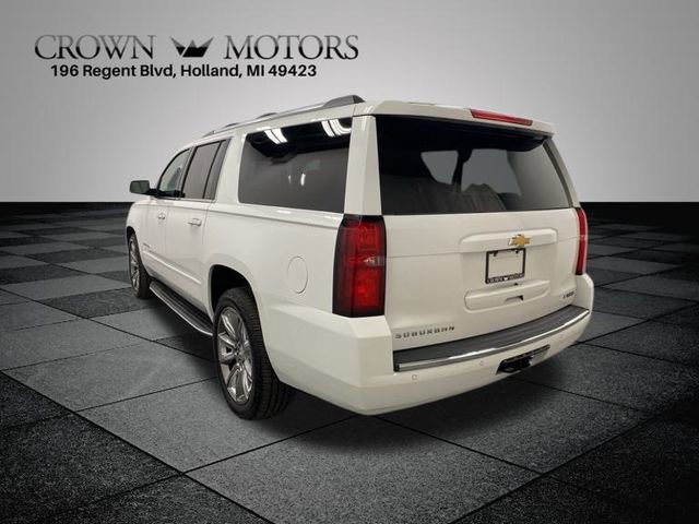 Summit White 2017 Chevrolet Suburban Premier 4WD 6-Speed Automatic Electronic with Overdrive EcoTec3 5.3L V8 ** LOW MILES**, **LEATHER**, **ACCIDENT FREE**, Suburban Premier, 10 Speakers, 1st & 2nd Row Color-Keyed Carpeted Floor Mats, 3.08 Rear Axle Ratio, 3rd Row 60/40 Power Fold Split-Bench, 3rd row seats: split-bench, 4-Wheel Antilock Disc Brakes, 4-Wheel Disc Brakes, 6-Way Power Front Passenger Seat Adjuster, ABS brakes, Adaptive suspension, Adjustable pedals, Air Conditioning, Alloy wheels, AM/FM radio: SiriusXM, Apple CarPlay, Auto High-beam Headlights, Auto-dimming door mirrors, Auto-Dimming Inside Rear-View Mirror, Auto-dimming Rear-View mirror, Automatic temperature control, Black Assist Steps, Bodyside moldings, Bose Centerpoint Premium 10-Speaker Surround Sound, Brake assist, Bumpers: body-color, CD player, Color-Keyed Carpeting Floor Covering, Compass, Delay-off headlights, Driver door bin, Driver Inboard & Front Passenger Airbags, Driver vanity mirror, Dual front impact airbags, Dual front side impact airbags, Electronic Cruise Control w/Set & Resume Speed, Electronic Stability Control, Emergency communication system: OnStar Guidance, Enhanced Driver Alert Package, Enhanced Driver Information Center, Extended-Range Remote Keyless Entry, Exterior Parking Camera Rear, Floor Console w/Storage Area, Fog Lamps, Forward Collision Alert Sensor Indicator, Front & Rear Parking Assist, Front anti-roll bar, Front Bucket Seats, Front Center Armrest, Front dual zone A/C, Front fog lights, Front reading lights, Front wheel independent suspension, Fully automatic headlights, Garage door transmitter, Hands Free Power Liftgate, HD Radio, Headphones, Heated & Vented Driver & Front Passenger Seats, Heated & Vented Front Reclining Bucket Seats, Heated 2nd Row Outboard Seats, Heated door mirrors, Heated front seats, Heated Leather Wrapped Steering Wheel, Heated rear seats, Heated steering wheel, High-Intensity Discharge Headlights, Illuminated entry, Intellibeam Headlamps w/Automatic High Beam On/Off, Lane Keep Assist, Leather Shift Knob, Low Speed Forward Automatic Braking, Low tire pressure warning, Magnetic Ride Control Suspension Package, Memory seat, Memory Settings, Navigation System, NavTraffic, Occupant sensing airbag, OnStar Basic Plan For 5 Years, Outside temperature display, Overhead airbag, Overhead console, Panic alarm, Passenger door bin, Passenger vanity mirror, Passive Entry System, Pedal memory, Perforated Leather-Appointed Seat Trim, Power door mirrors, Power driver seat, Power Folding & Adjustable Heated Outside Mirrors, Power Liftgate, Power passenger seat, Power Release 2nd Row Bucket Seats, Power steering, Power Tilt & Telescoping Steering Column, Power windows, Power-Adjustable Accelerator & Brake Pedals, Push Button Keyless Start, Radio: Chevrolet MyLink AM/FM Stereo w/Navigation, Rain sensing wipers, Rear air conditioning, Rear anti-roll bar, Rear audio controls, Rear Cross-Traffic Alert Sensor Indicator, Rear reading lights, Rear window defroster, Rear window wiper, Remote keyless entry, Remote Vehicle Start, Roof rack: rails only, Roof-Mounted Luggage Rack Side Rails, Safety Alert Driver Seat, Security system, Side Blind Zone Alert w/Lane Change Alert, Single-Slot CD/MP3 Player, SiriusXM Satellite Radio, Speed control, Speed-sensing steering, Split folding rear seat, Spoiler, Steering wheel memory, Steering wheel mounted audio controls, Tachometer, Telescoping steering wheel, Tilt steering wheel, Traction control, Trip computer, Turn signal indicator mirrors, Universal Home Remote, Variably intermittent wipers, Ventilated front seats, Voltmeter, Wheels: 20" x 9" Polished-Aluminum, Wireless Charging, Suburban Premier.