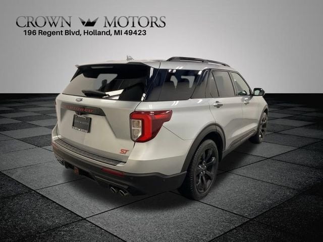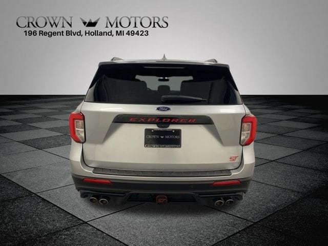 Silver Metallic 2020 Ford Explorer ST 4WD 10-Speed Automatic 3.0L EcoBoost V6 **ACCIDENT FREE**, **LOCAL TRADE IN**, 4WD, 10.1" LCD Capacitive Portrait Touchscreen, 12 Speakers, 2 Additional Speakers, 20" Machined Aluminum w/Painted Pockets Wheels, 2nd Row 35/30/35 Bench w/E-Z Entry & Armrest, 3.58 Non-Limited-Slip Rear Axle Ratio, 3rd row seats: bench, 4-Wheel Disc Brakes, ABS brakes, Air Conditioning, Alloy wheels, AM/FM radio: SiriusXM, Auto High-beam Headlights, Auto-dimming door mirrors, Auto-dimming Rear-View mirror, Automatic temperature control, Brake assist, Bumpers: body-color, Compass, Delay-off headlights, Driver door bin, Driver vanity mirror, Dual front impact airbags, Dual front side impact airbags, Electronic Stability Control, Emergency communication system: SYNC 3 911 Assist, Equipment Group 400A, Exterior Parking Camera Rear, FordPass Connect, Four wheel independent suspension, Front & Second Row Floor Liners, Front anti-roll bar, Front Bucket Seats, Front Center Armrest, Front dual zone A/C, Front fog lights, Front reading lights, Fully automatic headlights, Garage door transmitter: HomeLink, Heated door mirrors, Heated front seats, Heated rear seats, Heated steering wheel, Illuminated entry, Knee airbag, Leather Htd/Ventilated Sport Captain's Chairs, Leather steering wheel, Low tire pressure warning, Memory seat, Navigation System, Occupant sensing airbag, Outside temperature display, Overhead airbag, Overhead console, Panic alarm, Passenger door bin, Passenger vanity mirror, Performance Front & Rear Brakes, Power door mirrors, Power driver seat, Power Liftgate, Power passenger seat, Power steering, Power windows, Premium Technology Package, Radio data system, Radio: B&O Sound System by Bang & Olufsen, Rain sensing wipers, Rear air conditioning, Rear anti-roll bar, Rear reading lights, Rear window defroster, Rear window wiper, Remote keyless entry, Roof rack: rails only, Security system, Speed control, Speed-sensing steering, Speed-Sensitive Wipers, Split folding rear seat, Spoiler, Sport steering wheel, ST Street Pack, Steering wheel memory, Steering wheel mounted audio controls, SYNC 3 Communications & Entertainment System, SYNC 3/Apple CarPlay/Android Auto, Tachometer, Telescoping steering wheel, Tilt steering wheel, Traction control, Trip computer, Turn signal indicator mirrors, Twin Panel Moonroof, Variably intermittent wipers, Ventilated front seats, Voice-Activated Touchscreen Navigation System, Wheels: 21" Aluminum, 4WD.