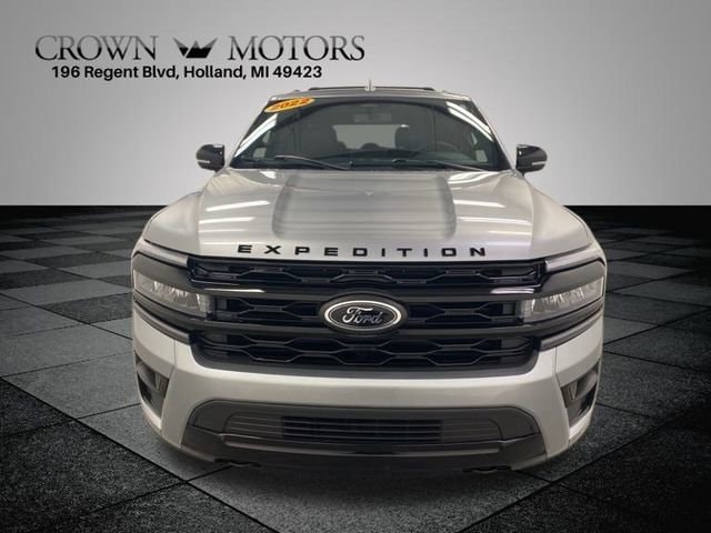 CARFAX One-Owner. Clean CARFAX. Iconic Silver Metallic 2022 Ford Expedition Limited 4WD 10-Speed Automatic EcoBoost 3.5L V6 GTDi DOHC 24V Twin Turbocharged **ONE OWNER**, ** LOW MILES**, **ACCIDENT FREE**, **LOCAL TRADE IN**, Expedition Limited, 4WD, 12 Speakers, 15.5" LCD Capacitive Touchscreen, 1st & 2nd Row Floor Liners w/Carpet Mats, 1st & 2nd Row Floor Mats w/Logo, 3.31 Axle Ratio, 3.73 Axle Ratio, 3rd row seats: split-bench, 4-Wheel Disc Brakes, ABS brakes, Active Park Assist 2.0, Active Park Assist 2.0 Removal, Adjustable pedals, Air Conditioning, Alloy wheels, AM/FM radio: SiriusXM with 360L, Auto High-beam Headlights, Auto-dimming door mirrors, Auto-dimming Rear-View mirror, Automatic temperature control, Brake assist, Bumpers: body-color, Compass, Delay-off headlights, Driver door bin, Driver vanity mirror, Dual front impact airbags, Dual front side impact airbags, Electronic Stability Control, Emergency communication system: SYNC 4 911 Assist, Equipment Group 300A Stealth Performance Package, Equipment Group 303A Stealth Package, Exterior Parking Camera Rear, Four wheel independent suspension, Front anti-roll bar, Front Bucket Seats, Front Center Armrest, Front dual zone A/C, Front fog lights, Front reading lights, Fully automatic headlights, Garage door transmitter, Hands-Free Foot-Activated Feature Removal, Heated & Ventilated Leather Front Captain's Chairs, Heated door mirrors, Heated front seats, Heated rear seats, Heated steering wheel, Heated/Ventilated Lthr Front Captain's Chairs (A), Illuminated entry, Instrument Panel Cluster, Leather steering wheel, Low tire pressure warning, Memory seat, Navigation system: Connected Navigation, Occupant sensing airbag, Outside temperature display, Overhead airbag, Overhead console, Panic alarm, Panoramic Vista Roof, Passenger door bin, Passenger vanity mirror, Pedal memory, Power door mirrors, Power driver seat, Power Liftgate, Power moonroof, Power passenger seat, Power steering, Power windows, Power-Folding Sideview Mirrors w/Autofold, Radio data system, Radio: B&O Sound System by Bang & Olufsen, Rain sensing wipers, Rear air conditioning, Rear anti-roll bar, Rear reading lights, Rear window defroster, Rear window wiper, Reclining 3rd row seat, Remote keyless entry, Second Row Power Windows Removal, Security system, SiriusXM w/360L, Speed control, Speed-sensing steering, Speed-Sensitive Wipers, Split folding rear seat, Spoiler, Stealth Edition Package, Steering wheel memory, Steering wheel mounted audio controls, SYNC 4 w/Enhanced Voice Recognition, SYNC 4A w/Enhanced Voice Recognition, Tachometer, Telescoping steering wheel, Tilt steering wheel, Traction control, Trip computer, Turn signal indicator mirrors, Variably intermittent wipers, Ventilated front seats, Voltmeter, Wheels: 20" Bright Machined Aluminum, Expedition Limited, 4WD.