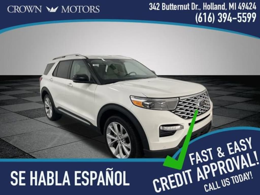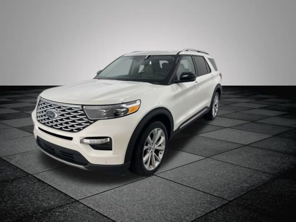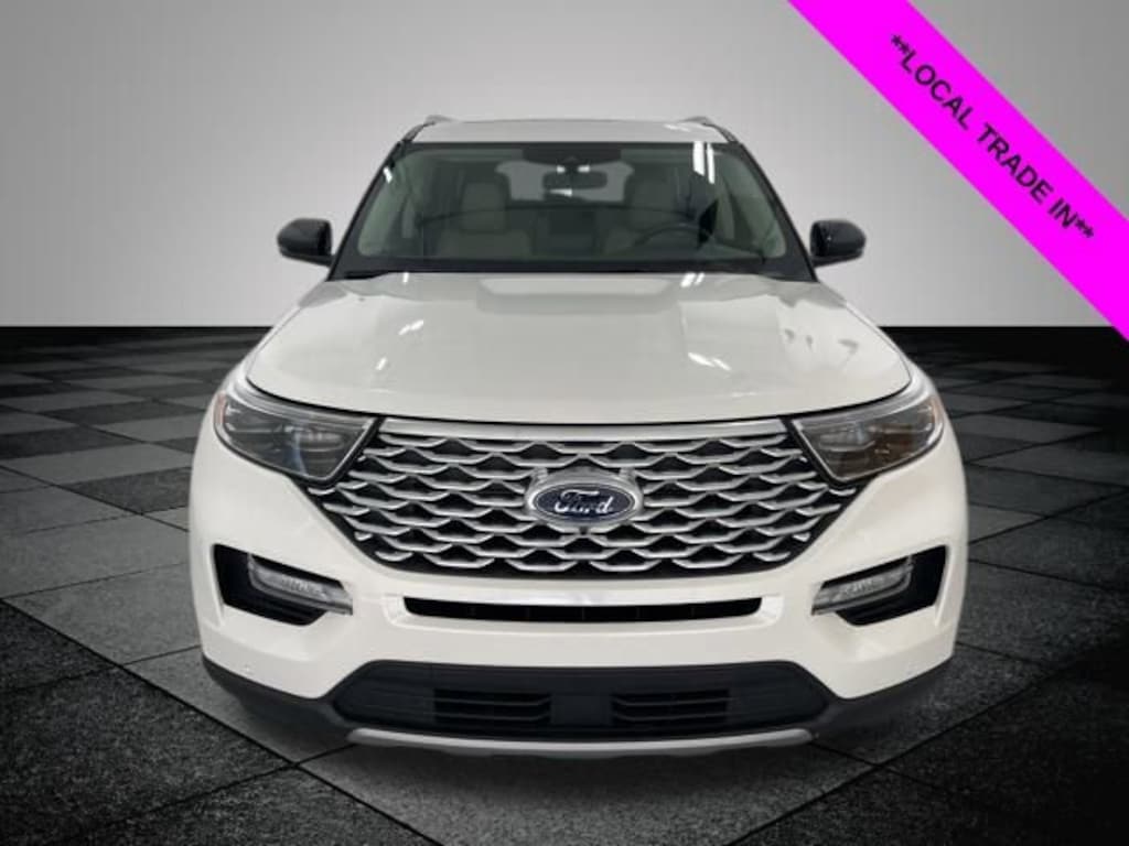 CARFAX One-Owner. Star White Metallic Tri-Coat 2022 Ford Explorer Platinum 4WD 10-Speed Automatic 3.0L EcoBoost V6 **LOCAL TRADE IN**, 4WD, 10.1" LCD Capacitive Portrait Touchscreen, 12 Speakers, 1st Row Heated Seats, 2 Additional Speakers, 3.31 Non-Limited-Slip Rear Axle Ratio, 3.73 Non-Limited-Slip Rear Axle Ratio, 3rd row seats: bench, 4-Wheel Disc Brakes, ABS brakes, Air Conditioning, Alloy wheels, AM/FM radio: SiriusXM, Auto High-beam Headlights, Auto-dimming door mirrors, Auto-dimming Rear-View mirror, Automatic temperature control, Brake assist, Bumpers: body-color, Cargo Area Management System, Class IV Trailer Tow Package, Compass, Delay-off headlights, Driver door bin, Driver vanity mirror, Dual front impact airbags, Dual front side impact airbags, Electronic Stability Control, Emergency communication system: SYNC 3 911 Assist, Equipment Group 601A, Exterior Parking Camera Rear, FordPass Connect, Four wheel independent suspension, Front & Second Row Floor Liners (16B), Front anti-roll bar, Front Bucket Seats, Front Center Armrest, Front dual zone A/C, Front fog lights, Front reading lights, Fully automatic headlights, Garage door transmitter, Genuine wood dashboard insert, Heated door mirrors, Heated front seats, Heated rear seats, Heated steering wheel, Illuminated entry, Knee airbag, Leather Htd/Ventilated Sport Captain's Chairs, Leather steering wheel, Low tire pressure warning, Memory seat, Navigation System, Occupant sensing airbag, Outside temperature display, Overhead airbag, Overhead console, Panic alarm, Passenger door bin, Passenger vanity mirror, Power door mirrors, Power driver seat, Power Liftgate, Power passenger seat, Power steering, Power windows, Premium Technology Package, Radio data system, Radio: B&O Sound System by Bang & Olufsen, Rain sensing wipers, Rear air conditioning, Rear anti-roll bar, Rear reading lights, Rear window defroster, Rear window wiper, Remote keyless entry, Roof rack: rails only, Security system, Speed control, Speed-sensing steering, Speed-Sensitive Wipers, Split folding rear seat, Spoiler, Steering wheel memory, Steering wheel mounted audio controls, SYNC 3 Communications & Entertainment System, SYNC 3/Apple CarPlay/Android Auto, Tachometer, Telescoping steering wheel, Tilt steering wheel, Traction control, Trip computer, Turn signal indicator mirrors, Twin Panel Moonroof, Variably intermittent wipers, Ventilated front seats, Voice-Activated Touchscreen Navigation System, Wheels: 21" Bright Machined-Face Aluminum, 4WD.