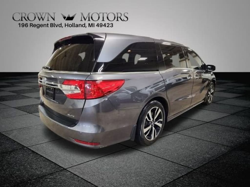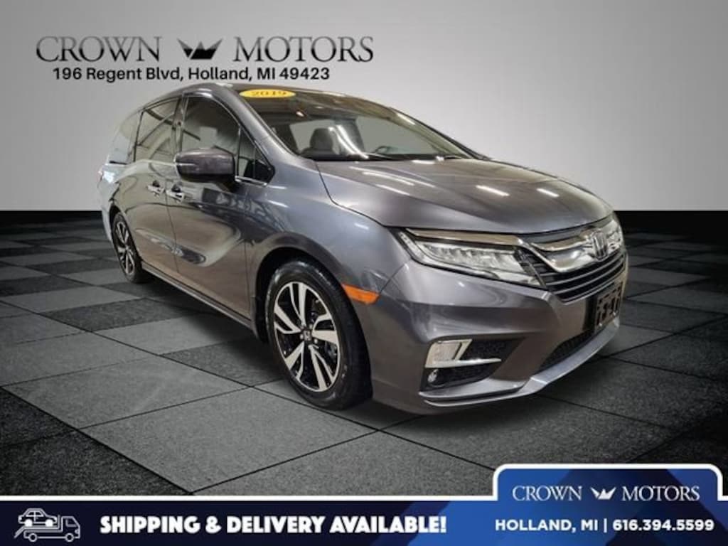 CARFAX One-Owner. Clean CARFAX. Midnight 2019 Honda Odyssey Elite FWD 10-Speed Automatic 3.5L V6 SOHC i-VTEC 24V **ONE OWNER**, **ACCIDENT FREE**, 11 Speakers, 3.61 Axle Ratio, 3rd row seats: split-bench, 4-Wheel Disc Brakes, A/V remote: CabinControl, ABS brakes, Air Conditioning, Alloy wheels, AM/FM radio: SiriusXM, Anti-whiplash front head restraints, Apple CarPlay/Android Auto, Auto High-beam Headlights, Auto-dimming Rear-View mirror, Automatic temperature control, Blind Spot Information (BSI) System warning, Brake assist, Bumpers: body-color, CD player, Compass, Delay-off headlights, Driver door bin, Driver vanity mirror, Driver's Seat Mounted Armrest, Dual front impact airbags, Dual front side impact airbags, DVD-Audio, Electronic Stability Control, Emergency communication system: HondaLink, Exterior Parking Camera Rear, Forward collision: Collision Mitigation Braking System (CMBS) + FCW mitigation, Four wheel independent suspension, Front anti-roll bar, Front Bucket Seats, Front dual zone A/C, Front fog lights, Front reading lights, Fully automatic headlights, Garage door transmitter: HomeLink, Headphones, Heated & Ventilated Front Bucket Seats, Heated door mirrors, Heated front seats, Heated steering wheel, Illuminated entry, Knee airbag, Lane departure: Lane Keeping Assist System (LKAS) active, Leather Seat Trim, Leather steering wheel, Low tire pressure warning, Memory seat, Navigation system: Honda Satellite-Linked Navigation System, Occupant sensing airbag, Outside temperature display, Overhead airbag, Overhead console, Panic alarm, Passenger door bin, Passenger seat mounted armrest, Passenger vanity mirror, Power door mirrors, Power driver seat, Power Liftgate, Power moonroof, Power passenger seat, Power steering, Power windows, Radio data system, Radio: 550-Watt AM/FM/HD Premium Audio System, Rain sensing wipers, Rear air conditioning, Rear anti-roll bar, Rear audio controls, Rear reading lights, Rear seat center armrest, Rear window defroster, Rear window wiper, Reclining 3rd row seat, Remote keyless entry, Security system, Speed control, Speed-sensing steering, Speed-Sensitive Wipers, Split folding rear seat, Spoiler, Steering wheel mounted audio controls, Tachometer, Telescoping steering wheel, Tilt steering wheel, Traction control, Trip computer, Turn signal indicator mirrors, Variably intermittent wipers, Ventilated front seats, Wheels: 19" Machine-Finished Alloy.
