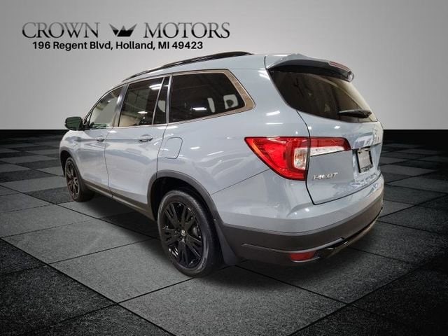 CARFAX One-Owner. Sonic Gray Pearl 2022 Honda Pilot Special Edition AWD 9-Speed Automatic 3.5L V6 24V SOHC i-VTEC **ONE OWNER**, ** LOW MILES**, AWD, 3rd row seats: split-bench, 4-Wheel Disc Brakes, 4.33 Axle Ratio, 7 Speakers, A/V remote: CabinControl, ABS brakes, Air Conditioning, Alloy wheels, AM/FM radio: SiriusXM, Apple CarPlay/Android Auto, Auto High-beam Headlights, Auto-dimming Rear-View mirror, Automatic temperature control, Blind Spot Information (BSI) System warning, Brake assist, Bumpers: body-color, Delay-off headlights, Driver door bin, Driver vanity mirror, Dual front impact airbags, Dual front side impact airbags, Electronic Stability Control, Emergency communication system: HondaLink Assist, Exterior Parking Camera Rear, Forward collision: Collision Mitigation Braking System (CMBS) + FCW mitigation, Four wheel independent suspension, Front anti-roll bar, Front Bucket Seats, Front Center Armrest, Front dual zone A/C, Front fog lights, Front reading lights, Fully automatic headlights, Garage door transmitter: HomeLink, Heated door mirrors, Heated Front Bucket Seats, Heated front seats, Illuminated entry, Lane departure: Lane Keeping Assist System (LKAS) active, Leather Seat Trim, Low tire pressure warning, Memory seat, Occupant sensing airbag, Outside temperature display, Overhead airbag, Overhead console, Panic alarm, Passenger door bin, Passenger vanity mirror, Power door mirrors, Power driver seat, Power Liftgate, Power moonroof, Power passenger seat, Power steering, Power windows, Radio data system, Radio: 215-Watt Audio System, Rear air conditioning, Rear anti-roll bar, Rear reading lights, Rear seat center armrest, Rear window defroster, Rear window wiper, Reclining 3rd row seat, Remote keyless entry, Roof rack: rails only, Security system, Speed control, Speed-sensing steering, Speed-Sensitive Wipers, Split folding rear seat, Spoiler, Steering wheel mounted audio controls, Tachometer, Telescoping steering wheel, Tilt steering wheel, Traction control, Trip computer, Turn signal indicator mirrors, Variably intermittent wipers, Wheels: 20" Exclusive Gloss Black Alloy, AWD.