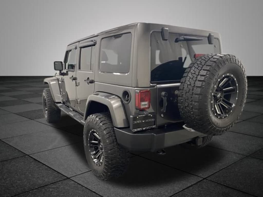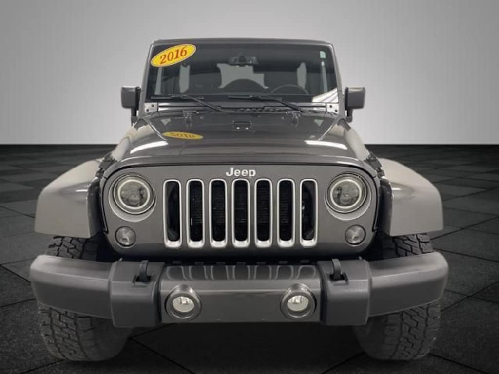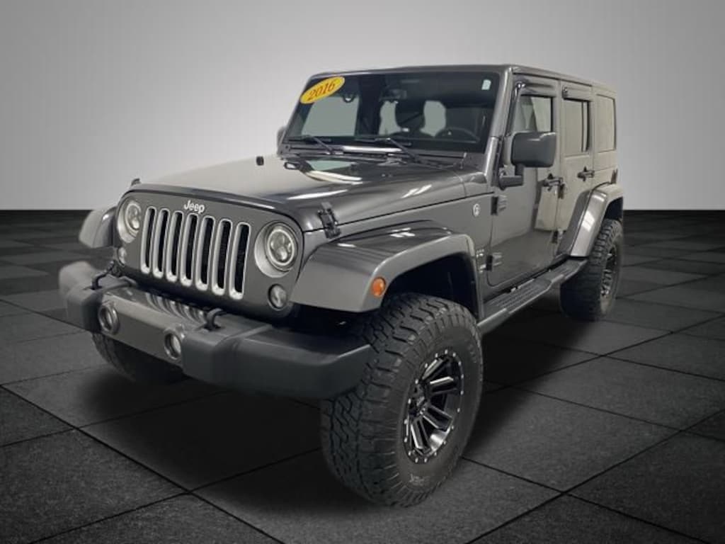 Clean CARFAX. Granite Crystal Metallic Clearcoat 2016 Jeep Wrangler Unlimited Sahara 4WD 5-Speed Automatic 3.6L V6 24V VVT 18" x 7.5" Polished Satin Carbon Wheels, 3.21 Rear Axle Ratio, 4-Wheel Disc Brakes, 8 Speakers, ABS brakes, Air Conditioning, Alloy wheels, AM/FM radio: SiriusXM, Audio Jack Input for Mobile Devices, Auto-dimming Rear-View mirror, Brake assist, CD player, Cloth Seats w/Adjustable Head Restraints, Compass, Driver door bin, Driver vanity mirror, Dual front impact airbags, Electronic Stability Control, Front anti-roll bar, Front Bucket Seats, Front Center Armrest w/Storage, Front fog lights, Front reading lights, Fully automatic headlights, Heated door mirrors, Heavy Duty Suspension w/Gas Shocks, Illuminated entry, Integrated roll-over protection, Leather steering wheel, Leather Wrapped Steering Wheel, Low tire pressure warning, Occupant sensing airbag, Outside temperature display, Panic alarm, Passenger door bin, Passenger vanity mirror, Power door mirrors, Power steering, Power windows, Radio data system, Radio: 130, Rear anti-roll bar, Remote keyless entry, Security system, Speed control, Split folding rear seat, Steering wheel mounted audio controls, Sunrider Soft Top, Tachometer, Tilt steering wheel, Traction control, Trip computer, Variably intermittent wipers.