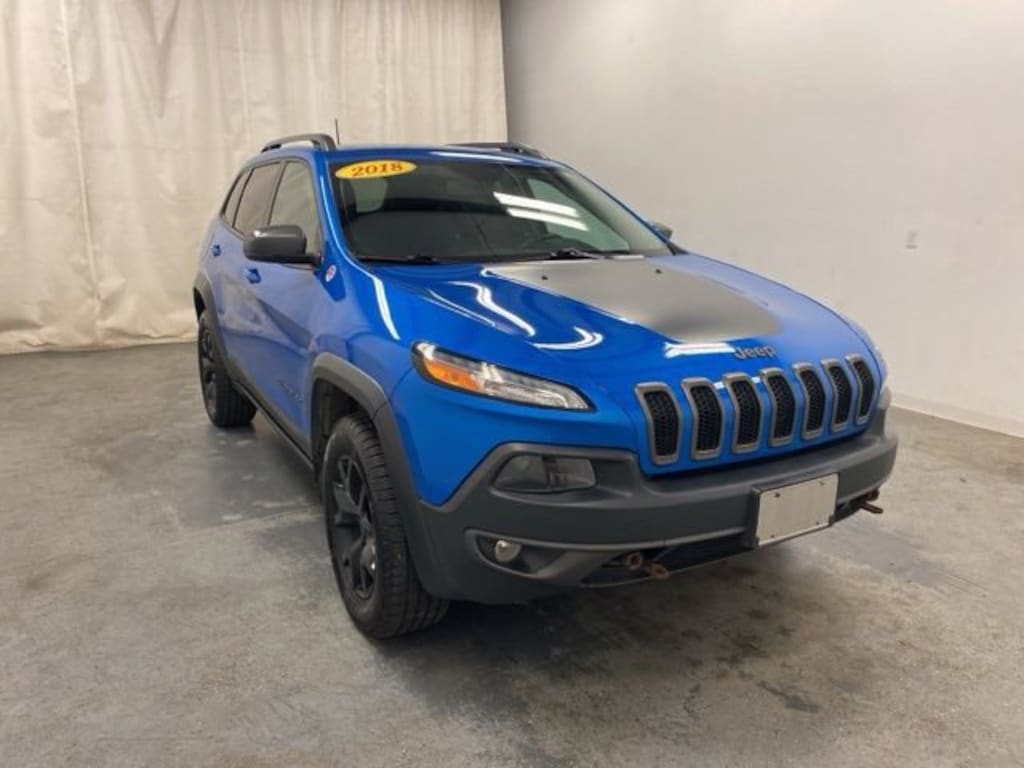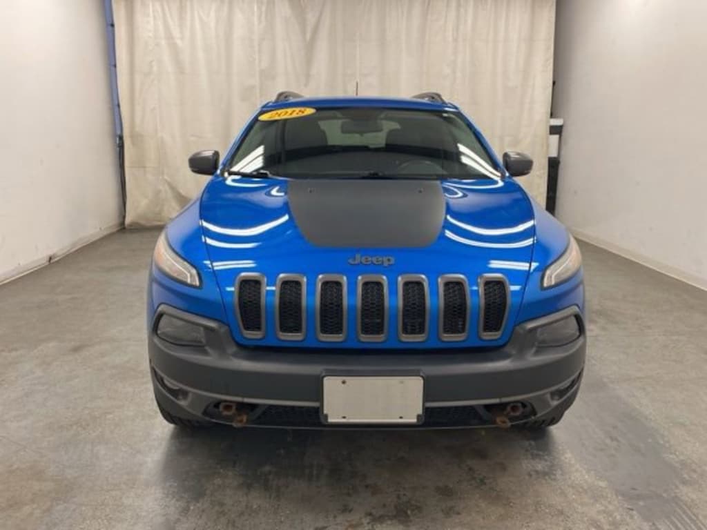 CLOSEOUT PRICING!!! VEHICLE IN INVENTORY UNTIL 11/30/25!!! Hydro Blue Pearlcoat 2018 Jeep Cherokee Trailhawk 4WD 9-Speed Automatic 3.2L V6 3.517 Axle Ratio, Quick Order Package 27E, 17" x 7.5" Aluminum Wheels, 4-Wheel Disc Brakes, 4.083 Axle Ratio, 6 Speakers, 600 Amp Maintenance Free Battery, 8.4" Touchscreen Display, ABS brakes, Air Conditioning, Alloy wheels, AM/FM radio: SiriusXM, Anti-whiplash front head restraints, Automatic temperature control, Auxiliary Transmission Oil Cooler, Brake assist, Cloth/Leather/Vinyl Bucket Seats, Compass, Delay-off headlights, Driver door bin, Driver vanity mirror, Dual front impact airbags, Dual front side impact airbags, Electronic Stability Control, Emergency communication system: Uconnect Access, Engine Oil Cooler, Exterior Mirrors Courtesy Lamps, Exterior Mirrors w/Supplemental Signals, Four wheel independent suspension, Front anti-roll bar, Front Bucket Seats, Front Center Armrest, Front dual zone A/C, Front fog lights, Front License Plate Bracket, Front reading lights, Fully automatic headlights, GPS Antenna Input, Heated door mirrors, High intensity discharge headlights: Bi-Xenon, Illuminated entry, Integrated Voice Command w/Bluetooth, Knee airbag, Leather Shift Knob, Low tire pressure warning, Manufacturer's Statement of Origin, Occupant sensing airbag, Off Road Suspension, Outside temperature display, Overhead airbag, Overhead console, Panic alarm, ParkView Rear Back-Up Camera, Passenger door bin, Passenger vanity mirror, Power door mirrors, Power driver seat, Power steering, Power windows, Radio data system, Radio: Uconnect 3C w/8.4" Display, Rear anti-roll bar, Rear reading lights, Rear seat center armrest, Rear side impact airbag, Rear window defroster, Rear window wiper, Remote keyless entry, Roof rack: rails only, SiriusXM Satellite Radio, Speed control, Speed-sensing steering, Split folding rear seat, Spoiler, Steering wheel mounted audio controls, Tachometer, Telescoping steering wheel, Tilt steering wheel, Traction control, Trip computer, Turn signal indicator mirrors, Uconnect Access, Variably intermittent wipers, Voltmeter, Wheels: 17" x 7.5" Black Painted Aluminum, 3.517 Axle Ratio, Quick Order Package 27E.