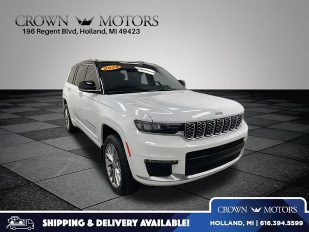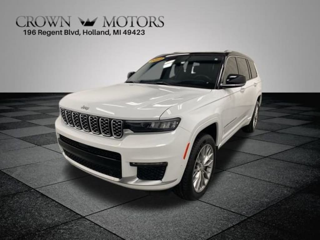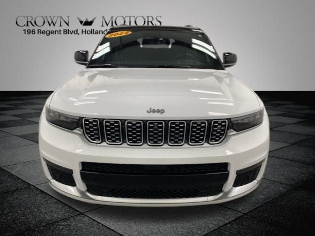 Clean CARFAX. Bright White Clearcoat 2022 Jeep Grand Cherokee L Summit 4WD 8-Speed Automatic 3.6L V6 24V VVT ** LOW MILES**, **ACCIDENT FREE**, **LOCAL TRADE IN**, 4WD, 10 Speakers, 2nd Row Manual Window Shades, 3.45 Rear Axle Ratio, 3rd row seats: split-bench, 4-Wheel Disc Brakes, ABS brakes, Active Noise Control System, Adaptive suspension, Advanced Protech Group IV, Air Conditioning, Alloy wheels, AM/FM radio: SiriusXM with 360L, Anti-whiplash front head restraints, Audio memory, Auto High-beam Headlights, Auto-dimming door mirrors, Auto-dimming Rear-View mirror, Auto-leveling suspension, Automatic temperature control, Brake assist, Bumpers: body-color, Compass, Delay-off headlights, Driver door bin, Driver vanity mirror, Dual front impact airbags, Dual front side impact airbags, Electronic Stability Control, Emergency communication system, Four wheel independent suspension, Front anti-roll bar, Front Bucket Seats, Front Center Armrest w/Storage, Front dual zone A/C, Front fog lights, Front reading lights, Fully automatic headlights, Garage door transmitter, Genuine wood dashboard insert, Genuine wood door panel insert, Heads-Up Display, Heated door mirrors, Heated front seats, Heated rear seats, Heated steering wheel, Illuminated entry, Interior Rear Facing Camera, Knee airbag, Leather steering wheel, Low tire pressure warning, Luxury Tech Group V, Memory seat, Nappa Leather Seats, Navigation System, Night Vision/Pedestrian-Animal Detection, Normal Duty Suspension, Occupant sensing airbag, Outside temperature display, Overhead airbag, Overhead console, Panic alarm, Passenger door bin, Passenger vanity mirror, Power door mirrors, Power driver seat, Power Fold Seatbacks, Power Liftgate, Power moonroof, Power passenger seat, Power steering, Power windows, Quick Order Package 22S, Radio data system, Radio: Uconnect 5 Nav w/10.1" Display, Rain sensing wipers, Rear air conditioning, Rear anti-roll bar, Rear dual zone A/C, Rear reading lights, Rear seat center armrest, Rear window defroster, Rear window wiper, Rearview Autodim Digital Display Mirror, Reclining 3rd row seat, Remote keyless entry, Security system, Speed control, Speed-Sensitive Wipers, Split folding rear seat, Spoiler, Steering wheel memory, Steering wheel mounted audio controls, Tachometer, Telescoping steering wheel, Tilt steering wheel, Traction control, Trip computer, Turn signal indicator mirrors, Two Tone Paint Group, Variably intermittent wipers, Ventilated front seats, Voltmeter, Wheels: 20" x 8.5" Fully Painted Aluminum Silver, Wireless Charging Pad, 4WD.