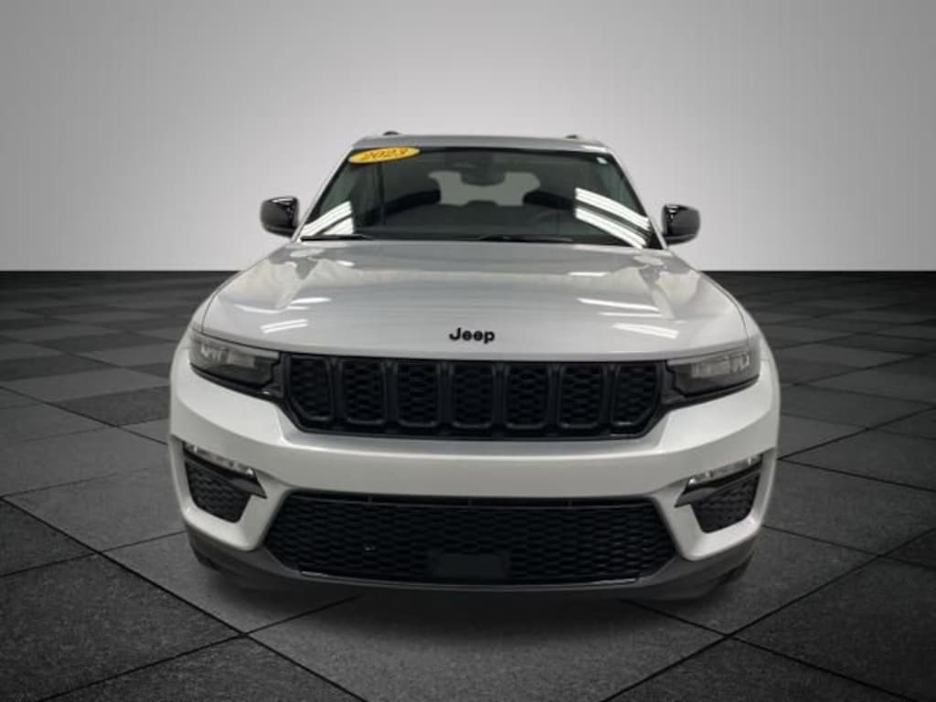 Clean CARFAX. Silver Zynith 2023 Jeep Grand Cherokee Limited 4WD 8-Speed Automatic 3.6L V6 24V VVT 4WD, Black Appearance Package, Gloss Black Exterior Accents, Molded In Color Black/Gloss Black Roof Rails, Navigation System, Quick Order Package 22E, Wheels: 20" x 8.5" Gloss Black Painted Aluminum, 3.45 Rear Axle Ratio, 4-Wheel Disc Brakes, 6 Speakers, ABS brakes, Active Noise Control System, Air Conditioning, Alloy wheels, AM/FM radio: SiriusXM with 360L, Anti-whiplash front head restraints, Audio memory, Auto High-beam Headlights, Automatic temperature control, Brake assist, Bumpers: body-color, Capri Leatherette Seats, Compass, Delay-off headlights, Driver door bin, Driver vanity mirror, Dual front impact airbags, Dual front side impact airbags, Dual-Pane Panoramic Sunroof, Electronic Stability Control, Emergency communication system, Four wheel independent suspension, Front anti-roll bar, Front Bucket Seats, Front Center Armrest w/Storage, Front dual zone A/C, Front fog lights, Front reading lights, Fully automatic headlights, Garage door transmitter, Heated door mirrors, Heated front seats, Heated rear seats, Heated steering wheel, Illuminated entry, Knee airbag, Low tire pressure warning, Memory seat, Normal Duty Suspension, Occupant sensing airbag, Outside temperature display, Overhead airbag, Overhead console, Panic alarm, ParkView Rear Back-Up Camera, Passenger door bin, Passenger vanity mirror, Power door mirrors, Power driver seat, Power Liftgate, Power passenger seat, Power steering, Power windows, Radio data system, Radio: Uconnect 5 Nav w/10.1" Display, Rear anti-roll bar, Rear reading lights, Rear window defroster, Rear window wiper, Remote keyless entry, Security system, Speed control, Speed-Sensitive Wipers, Split folding rear seat, Spoiler, Steering wheel mounted audio controls, Tachometer, Telescoping steering wheel, Tilt steering wheel, Traction control, Trip computer, Turn signal indicator mirrors, Variably intermittent wipers, Voltmeter, Wheels: 18" x 8" Fully Painted Aluminum, 4WD, Black Appearance Package, Gloss Black Exterior Accents, Molded In Color Black/Gloss Black Roof Rails, Navigation System, Quick Order Package 22E, Wheels: 20" x 8.5" Gloss Black Painted Aluminum.