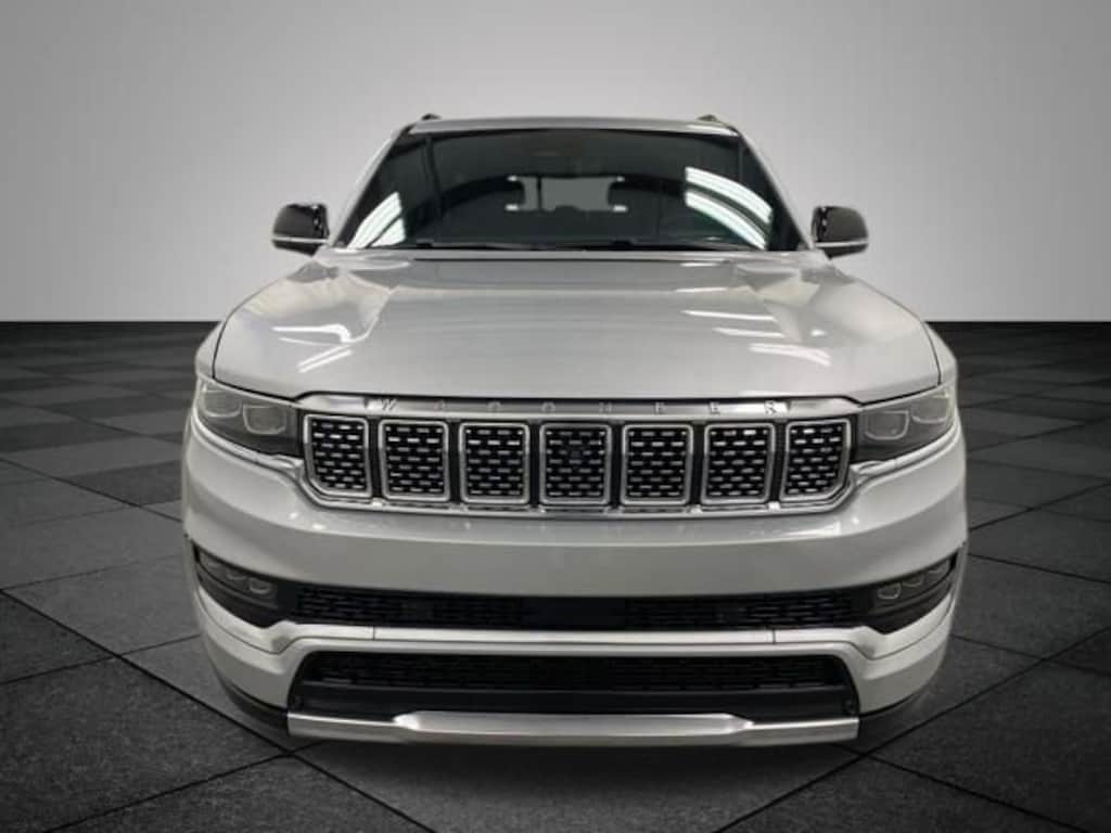 CARFAX One-Owner. Silver Zynith 2023 Jeep Grand Wagoneer L Series II 4WD 8-Speed Automatic 3.0L I6 **WONT LAST LONG**, 19 Speakers, Body Color Roof, Navigation System, Quick Order Package 28S, Two Tone Paint Group, 3.92 Rear Axle Ratio, 3rd row seats: bench, 4-Wheel Disc Brakes, ABS brakes, Adjustable pedals, Air Conditioning, Alloy wheels, AM/FM radio: SiriusXM with 360L, Anti-whiplash front head restraints, Audio memory, Auto High-beam Headlights, Auto-dimming door mirrors, Auto-dimming Rear-View mirror, Auto-leveling suspension, Automatic temperature control, Brake assist, Bumpers: body-color, Compass, Delay-off headlights, Driver door bin, Driver vanity mirror, Driver's Seat Mounted Armrest, Dual front impact airbags, Dual front side impact airbags, Electronic Stability Control, Emergency communication system: Automatic SOS Call, Four wheel independent suspension, Front anti-roll bar, Front Bucket Seats, Front Center Armrest w/Storage, Front dual zone A/C, Front fog lights, Front Passenger Interactive Display, Front reading lights, Fully automatic headlights, Garage door transmitter, Genuine wood console insert, Genuine wood dashboard insert, Genuine wood door panel insert, Heads-Up Display, Heated door mirrors, Heated front seats, Heated rear seats, Heated steering wheel, Illuminated entry, Knee airbag, Leather steering wheel, Leather Trimmed Bucket Seats, Low tire pressure warning, Memory seat, Normal Duty Suspension, Occupant sensing airbag, Outside temperature display, Overhead airbag, Overhead console, Panic alarm, Passenger door bin, Passenger seat mounted armrest, Passenger vanity mirror, Pedal memory, Power adjustable front head restraints, Power door mirrors, Power driver seat, Power Liftgate, Power moonroof, Power passenger seat, Power steering, Power windows, Radio data system, Radio: Uconnect 5 Nav w/12.0" Display, Rain sensing wipers, Rear air conditioning, Rear anti-roll bar, Rear dual zone A/C, Rear reading lights, Rear seat center armrest, Rear window defroster, Rear window wiper, Reclining 3rd row seat, Remote keyless entry, Security system, Speed control, Speed-sensing steering, Speed-Sensitive Wipers, Split folding rear seat, Steering wheel memory, Steering wheel mounted audio controls, Tachometer, Telescoping steering wheel, Tilt steering wheel, Traction control, Trip computer, Turn signal indicator mirrors, Variably intermittent wipers, Ventilated front seats, Voltmeter, Wheels: 22" x 9.0" Premium 1 Aluminum, Wheels: 22" x 9.0" Premium 2 Aluminum, 19 Speakers, Body Color Roof, Navigation System, Quick Order Package 28S, Two Tone Paint Group.