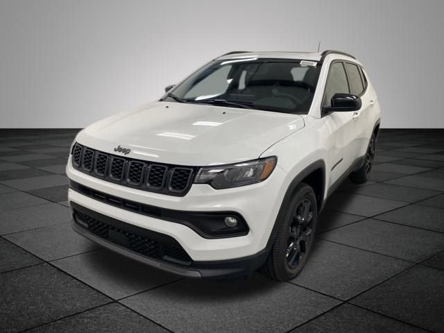Clean CARFAX. Bright White Clearcoat 2025 Jeep Compass Latitude 4WD 8-Speed Automatic 2.0L I4 DOHC 4WD, 10.1" Touchscreen Display, 2nd Row USB Type A/C Charge Only, Air Conditioning ATC w/Dual Zone Control, All-Season Floor Mats, Altitude Special Edition, Auto-Dimming Rear-View Mirror, Black Day Light Opening Moldings, Convenience Group, Foot Activated Open 'N Go Liftgate, Gloss Black Surround/Neutral Gray Rings, Humidity Sensor, Neutral Gray Exterior Badging, Piano Black Interior Accents, Power 2-Way Driver Lumbar Adjust, Power Adjust 8-Way Driver Seat, Power Front/Fixed Rear Full Sunroof, Power Liftgate, Premium Alpine Speaker System, Quick Order Package 29J, Reversible Carpet/Vinyl Cargo Mat, Sliding Sun Visors w/Illuminated Mirrors, Wheels: 18" x 7" Gloss Black Painted Aluminum, Windshield Wiper De-Icer, 3.73 Final Drive Ratio, 4-Wheel Disc Brakes, 6 Speakers, ABS brakes, Air Conditioning, Alloy wheels, AM/FM radio: SiriusXM, Auto High-beam Headlights, Brake assist, Bumpers: body-color, Compass, Delay-off headlights, Driver door bin, Driver vanity mirror, Dual front impact airbags, Dual front side impact airbags, Electronic Stability Control, Emergency communication system: Jeep Connect, Four wheel independent suspension, Front anti-roll bar, Front Bucket Seats, Front Center Armrest w/Storage, Front fog lights, Front reading lights, Fully automatic headlights, Heated door mirrors, Heated front seats, Heated steering wheel, Illuminated entry, Knee airbag, Leather Shift Knob, Leather steering wheel, Low tire pressure warning, Occupant sensing airbag, Outside temperature display, Overhead airbag, Overhead console, Panic alarm, ParkView Rear Back-Up Camera, Passenger door bin, Passenger vanity mirror, Power door mirrors, Power steering, Power windows, Premium Cloth/Vinyl Bucket Seats, Radio: Uconnect 5 w/8.4" Display, Rear anti-roll bar, Rear seat center armrest, Rear window defroster, Rear window wiper, Remote keyless entry, Security system, Speed control, Split folding rear seat, Spoiler, Steering wheel mounted audio controls, Tachometer, Telescoping steering wheel, Tilt steering wheel, Traction control, Trip computer, Variably intermittent wipers, 4WD, 10.1" Touchscreen Display, 2nd Row USB Type A/C Charge Only, Air Conditioning ATC w/Dual Zone Control, All-Season Floor Mats, Altitude Special Edition, Auto-Dimming Rear-View Mirror, Black Day Light Opening Moldings, Convenience Group, Foot Activated Open 'N Go Liftgate, Gloss Black Surround/Neutral Gray Rings, Humidity Sensor, Neutral Gray Exterior Badging, Piano Black Interior Accents, Power 2-Way Driver Lumbar Adjust, Power Adjust 8-Way Driver Seat, Power Front/Fixed Rear Full Sunroof, Power Liftgate, Premium Alpine Speaker System, Quick Order Package 29J, Reversible Carpet/Vinyl Cargo Mat, Sliding Sun Visors w/Illuminated Mirrors, Wheels: 18" x 7" Gloss Black Painted Aluminum, Windshield Wiper De-Icer.