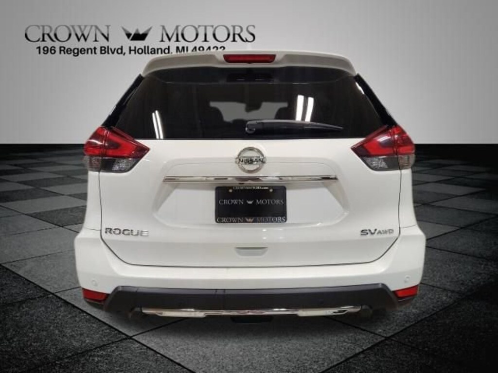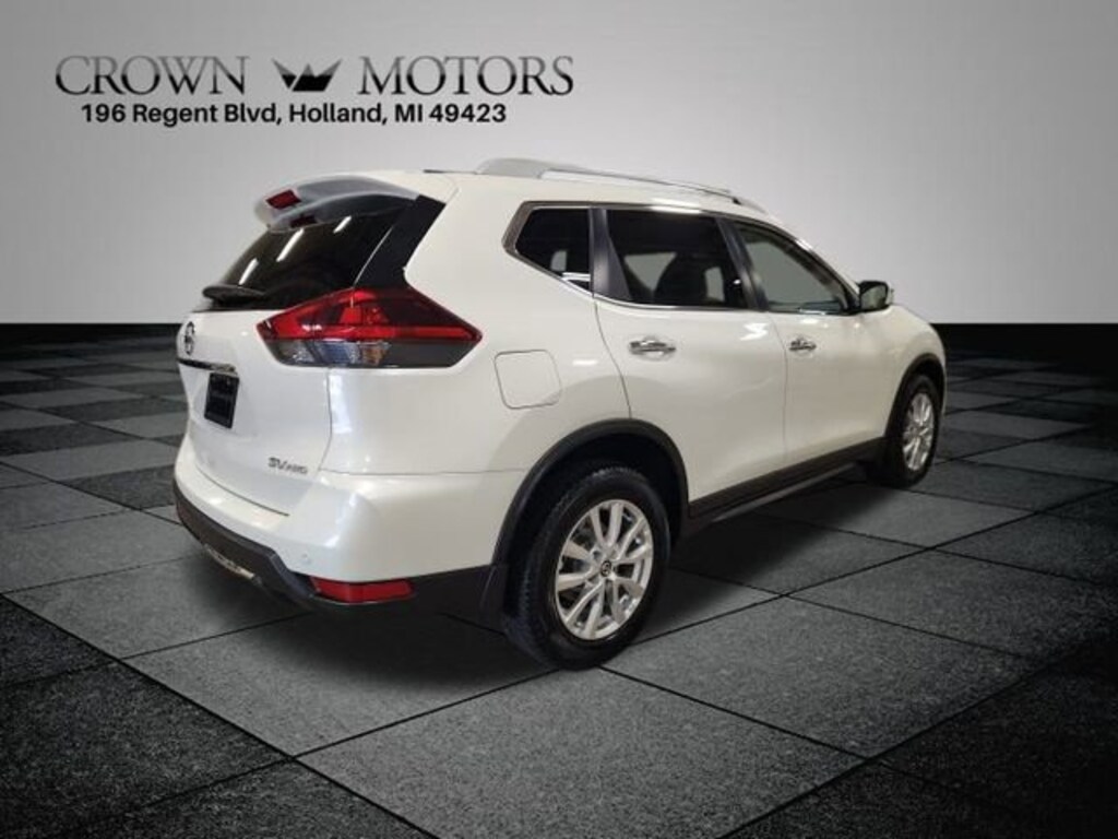 Pearl White Tricoat 2019 Nissan Rogue SV AWD CVT with Xtronic 2.5L I4 DOHC 16V ** LOW MILES**, **LOCAL TRADE IN**, 17" Aluminum Alloy Wheels, 4-Wheel Disc Brakes, 6 Speakers, 6.386 Axle Ratio, ABS brakes, Air Conditioning, Alloy wheels, AM/FM radio: SiriusXM, Anti-whiplash front head restraints, Auto High-beam Headlights, Automatic temperature control, Black Splash Guards (Set of 4), Blind Spot Warning, Brake assist, Bumpers: body-color, CD player, Cloth Seat Trim, Delay-off headlights, Driver door bin, Driver vanity mirror, Dual front impact airbags, Dual front side impact airbags, Electronic Stability Control, First Aid Kit, Floor Mats & 2-PC Cargo Area Protector, Four wheel independent suspension, Front anti-roll bar, Front Bucket Seats, Front Center Armrest w/Storage, Front dual zone A/C, Front reading lights, Fully automatic headlights, Heated door mirrors, Heated Front Bucket Seats, Heated front seats, Illuminated entry, Leather Shift Knob, Low tire pressure warning, NissanConnect featuring Apple CarPlay and Android Auto, Occupant sensing airbag, Outside temperature display, Overhead airbag, Overhead console, Panic alarm, Passenger door bin, Passenger vanity mirror, Power door mirrors, Power driver seat, Power Liftgate, Power steering, Power windows, Radio data system, Radio: AM/FM/CD/AUX, Radio: AM/FM/CD/AUX NissanConnect w/Navigation, Rear anti-roll bar, Rear Parking Sensors, Rear seat center armrest, Rear window defroster, Rear window wiper, Remote keyless entry, Roof rack: rails only, Security system, Speed control, Speed-sensing steering, Split folding rear seat, Spoiler, Steering wheel mounted audio controls, Tachometer, Telescoping steering wheel, Tilt steering wheel, Traction control, Trip computer, Turn signal indicator mirrors, Variably intermittent wipers.